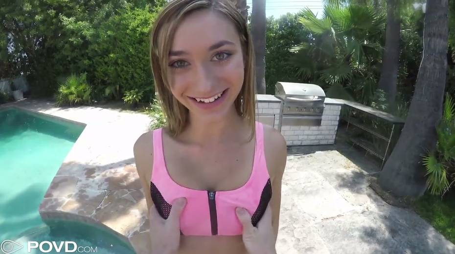 Slender chick with nice boobies Ana Rose gets fucked by the poolside