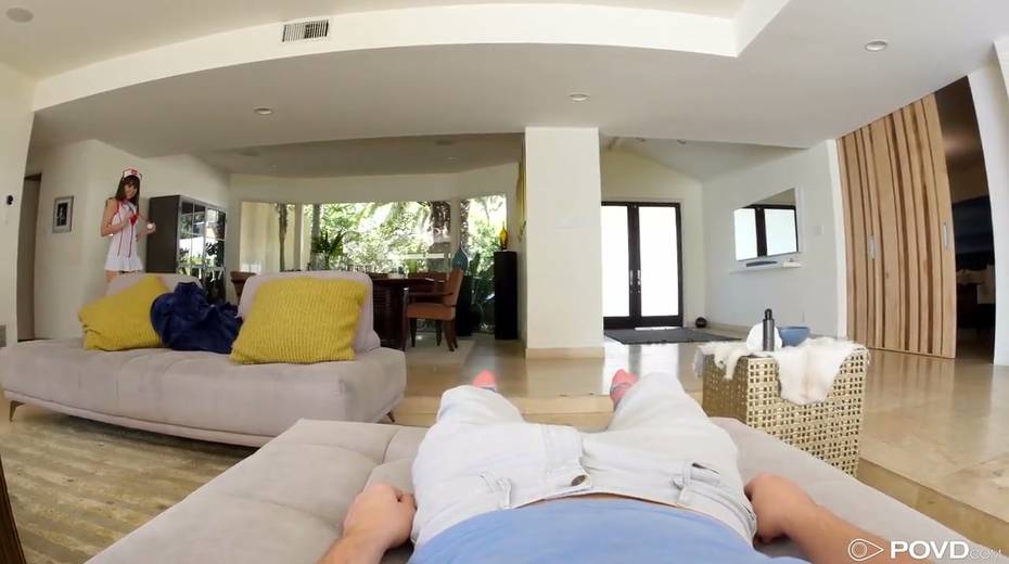 Sexy nurse in uniform Riley Reid gives her head and gets fucked in POV clip