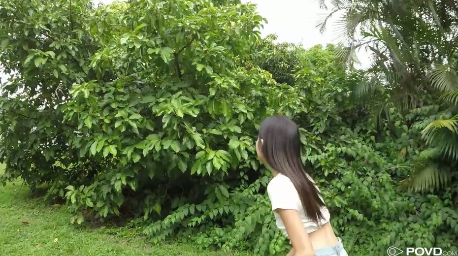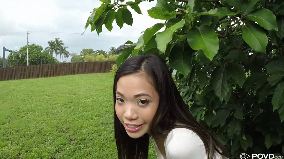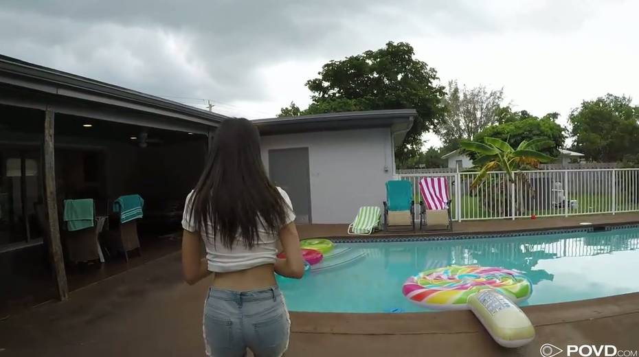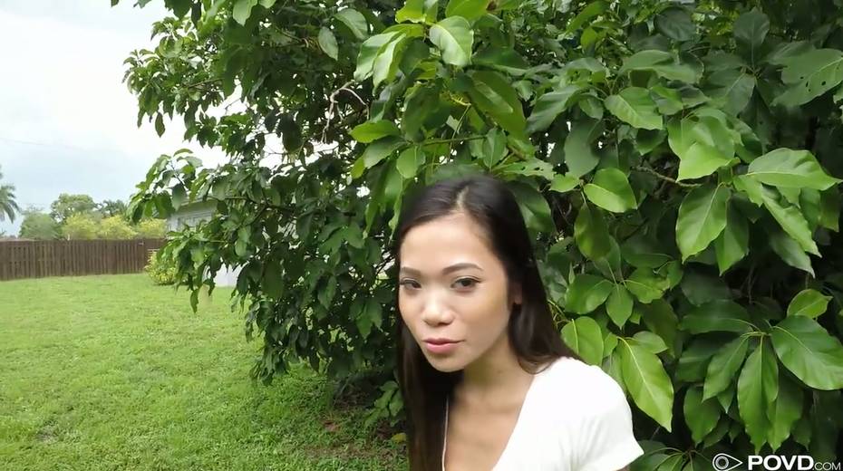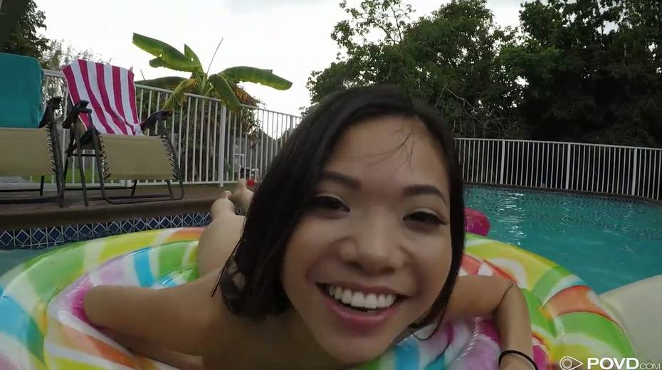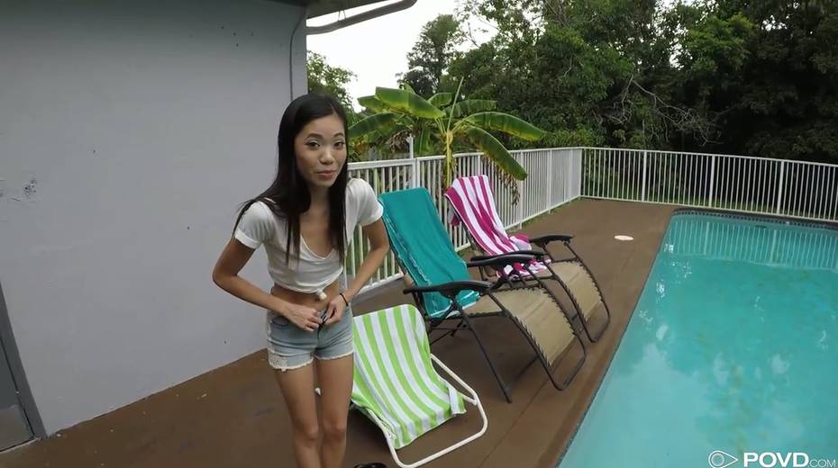 Flat chested Asian chick Vina Sky gives a blowjob and gets laid by the poolside