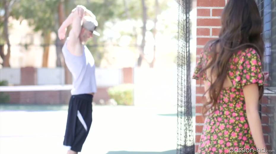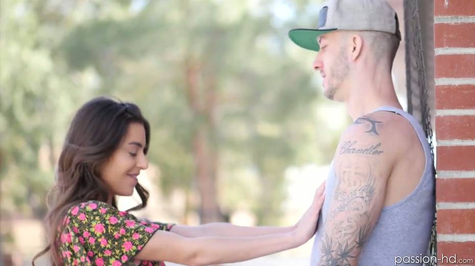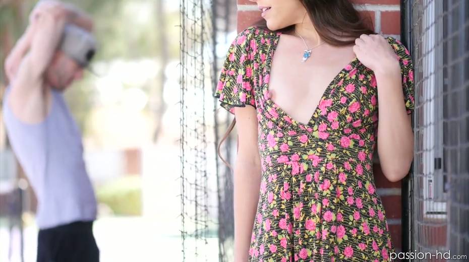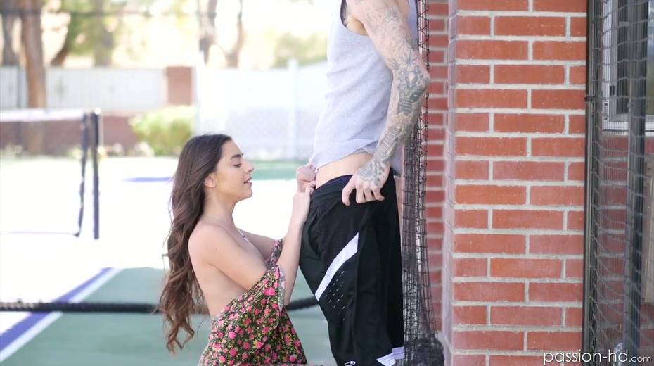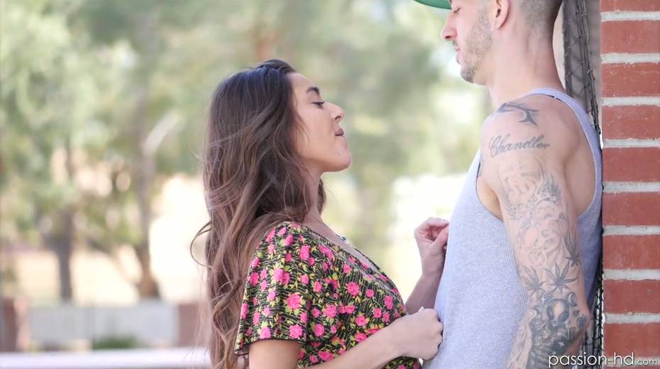 Sensual babe Arielle Faye gives outdoor blowjob and gets her pussy nailed indoor