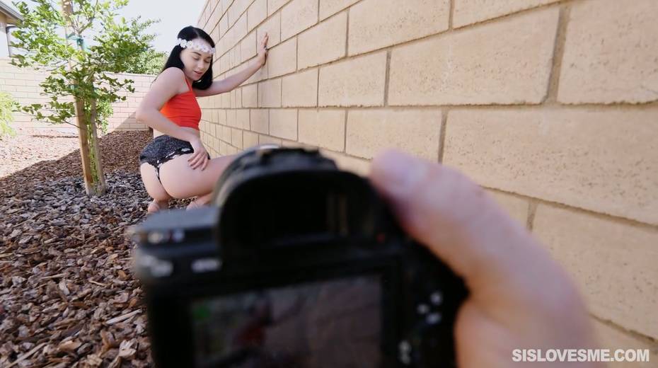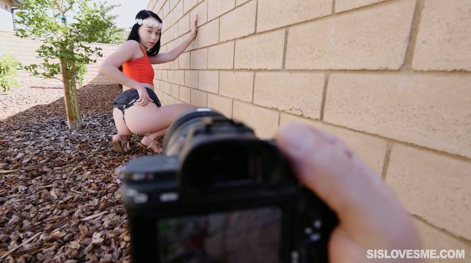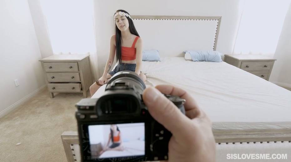 Cute stepdaughter Bambi Black gives a nice blowjob to her horny step brother