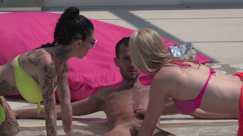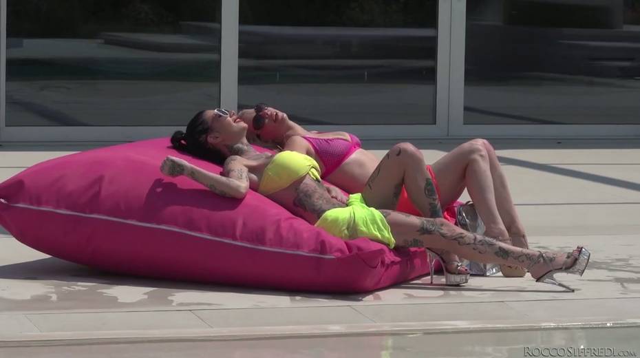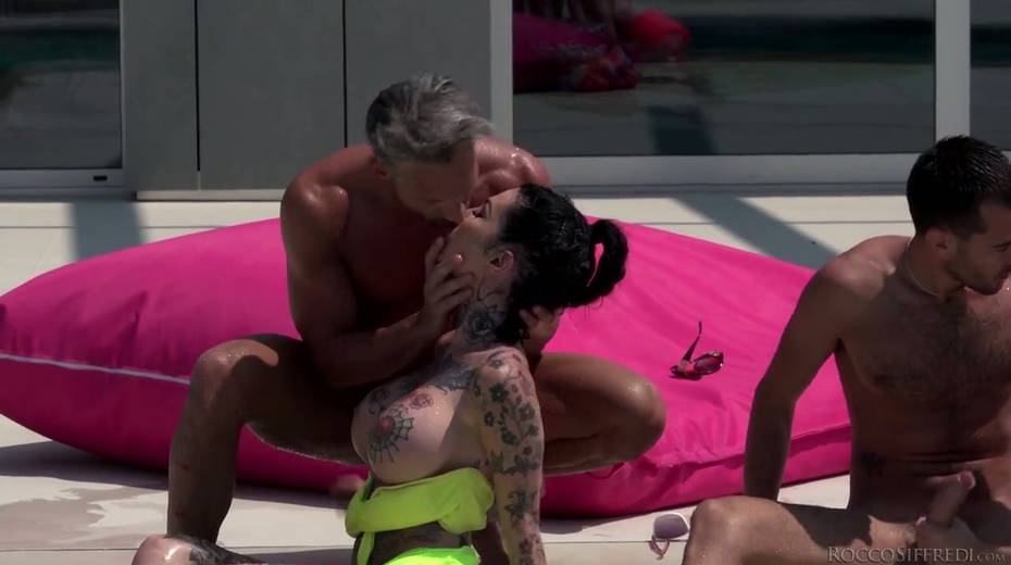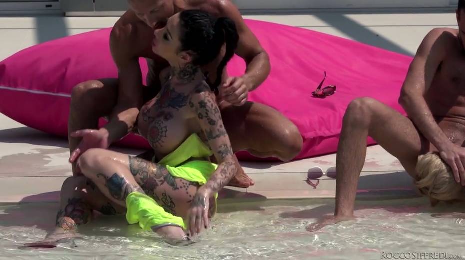 Tattooed bitch and whore Kelly Stafford are fucked by two hot blooded studs