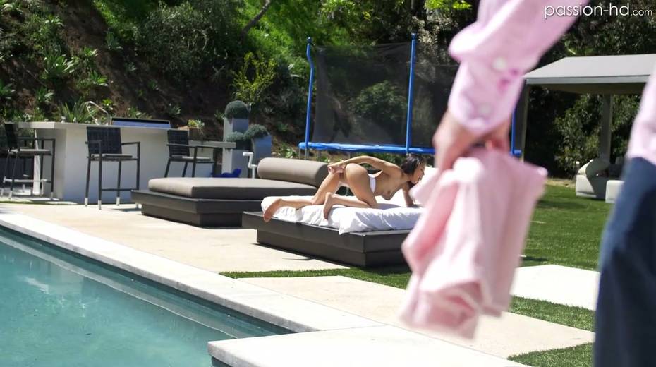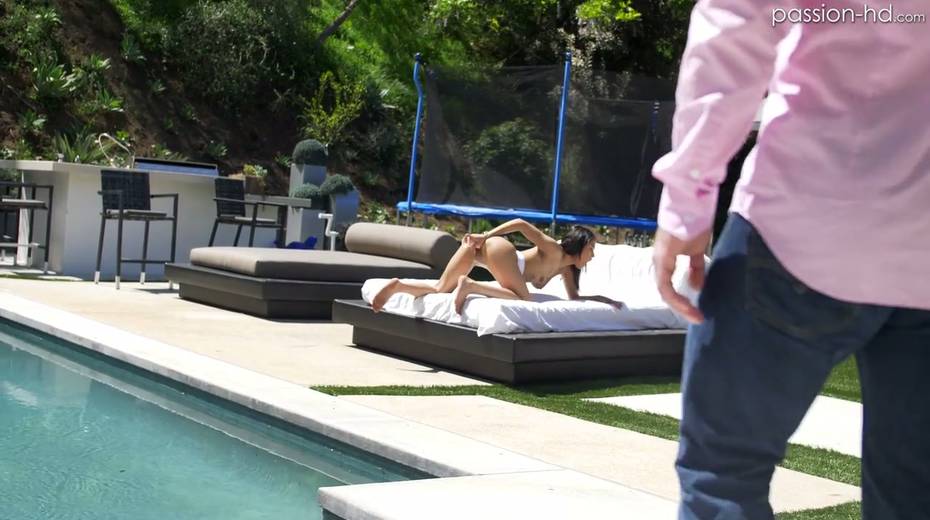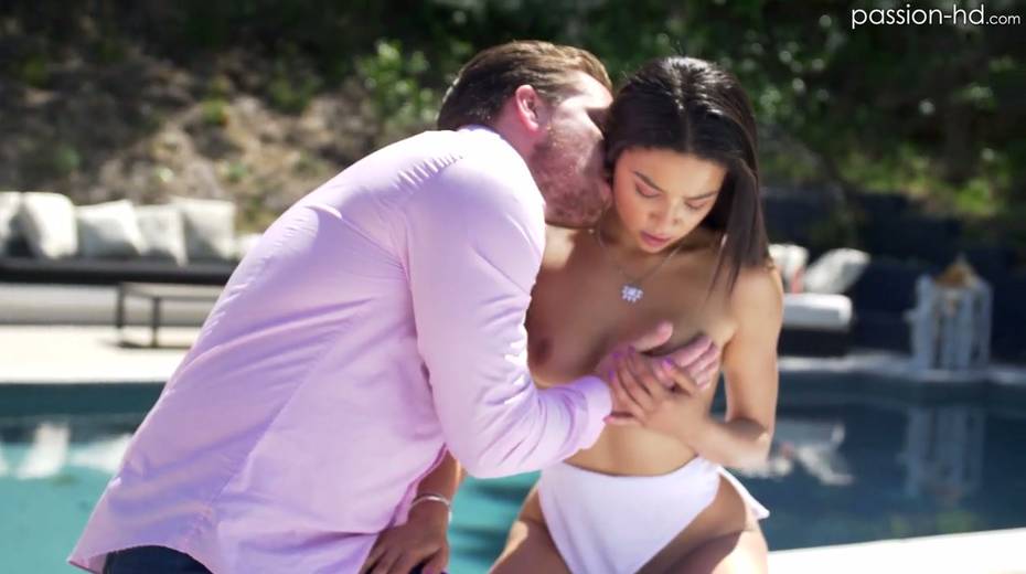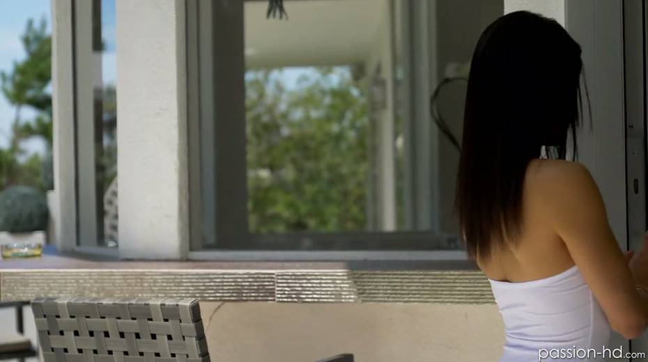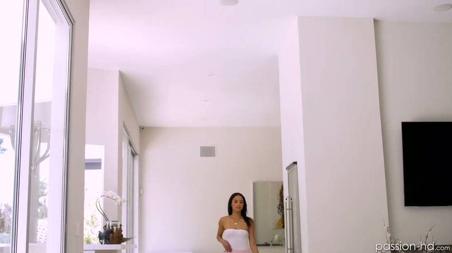 Lovely petite brunette Maya Bijou gives a blowjob and gets her slit rammed