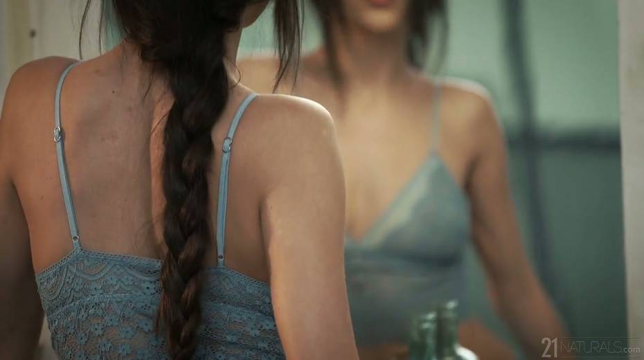 Full natural babe Anya Krey admires herself in the mirror and gets laid