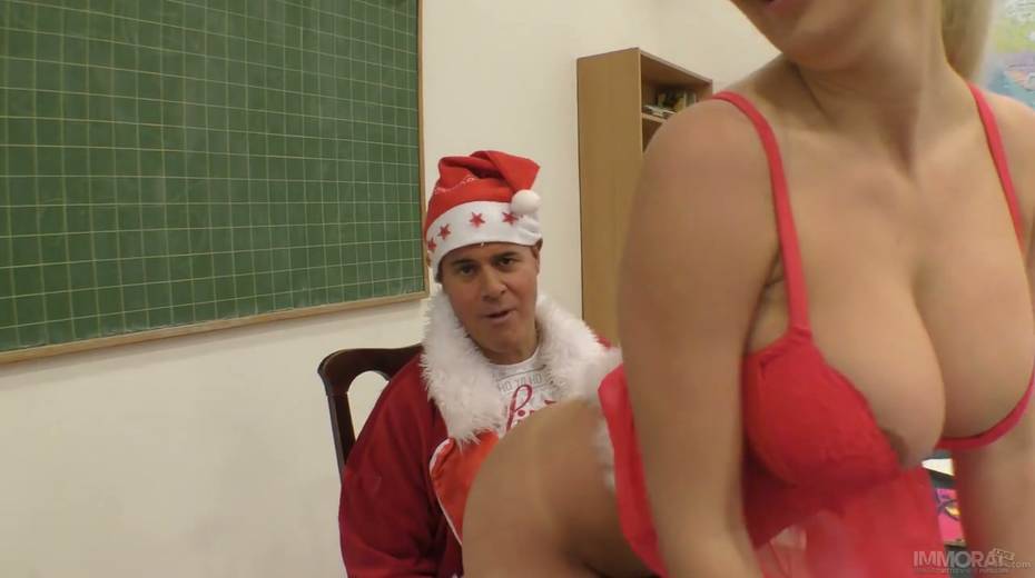 Perverted Santa Clause gives Aislin a new vibrator for good behavior