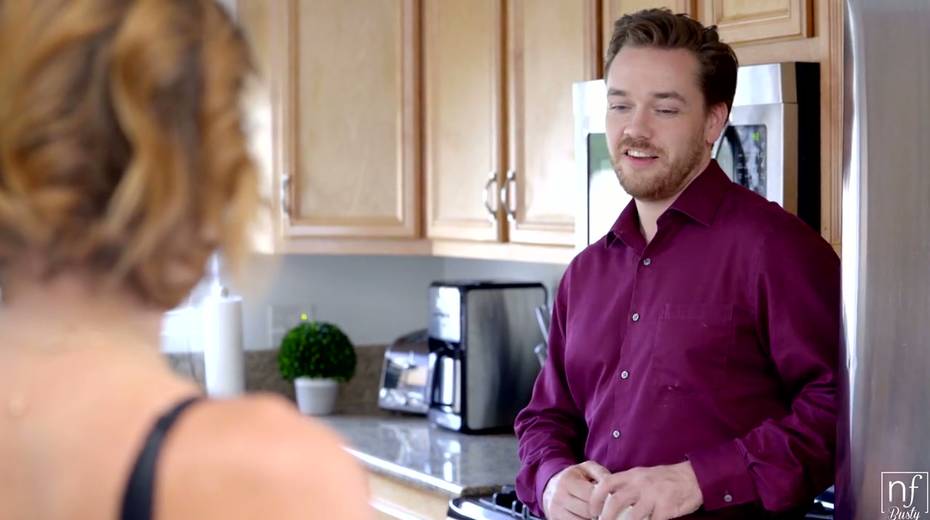 Juggy temptress Krissy Lynn is having crazy sex fun in the kitchen