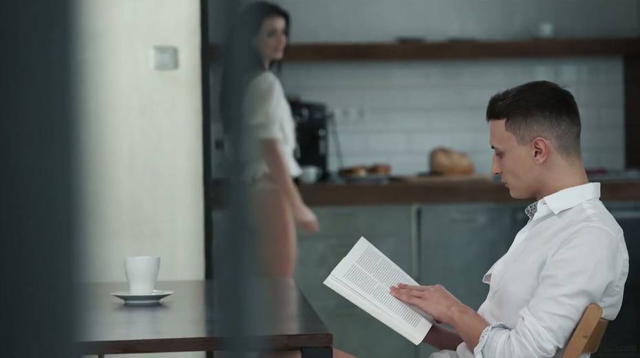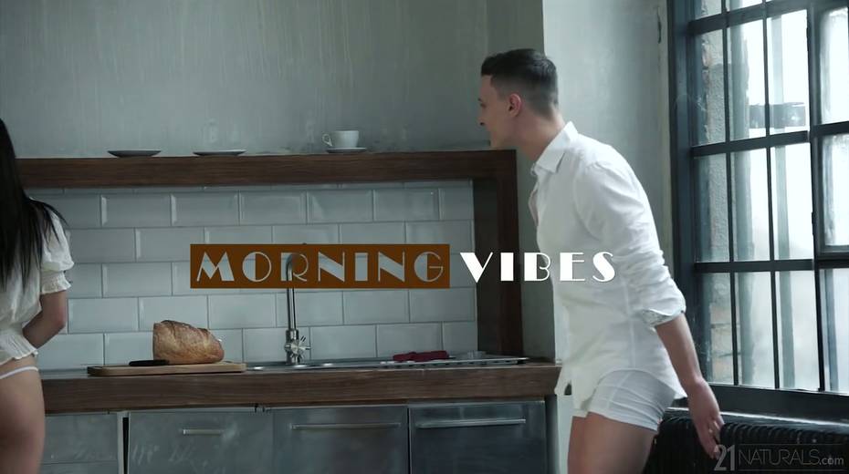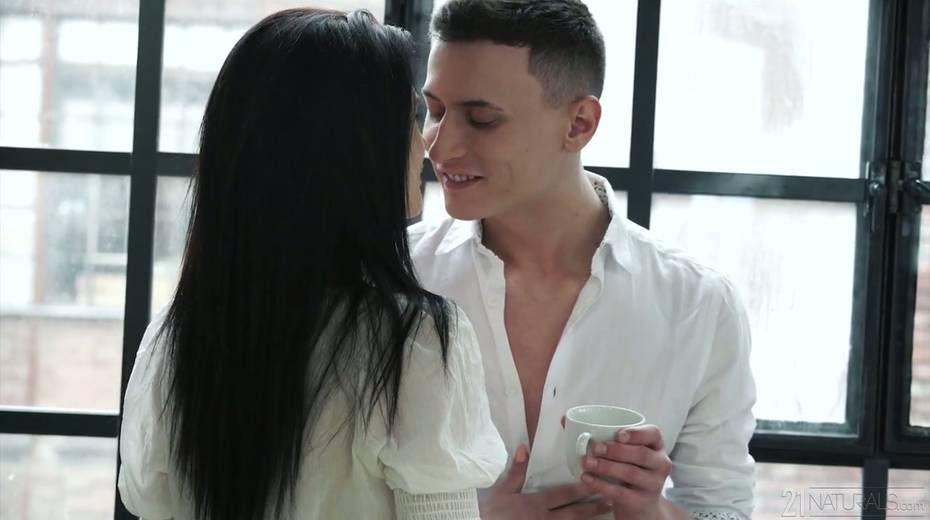 Lovely brunet babe Kate Rich is making love with her boyfriend after breakfast