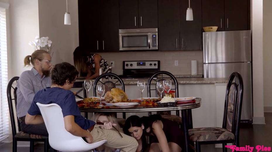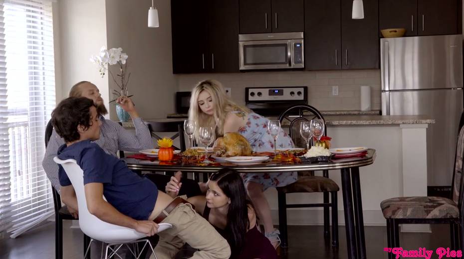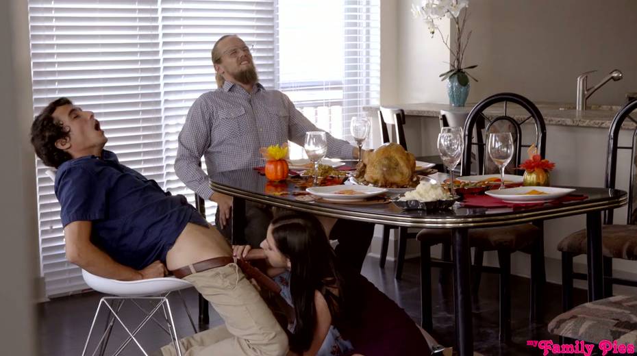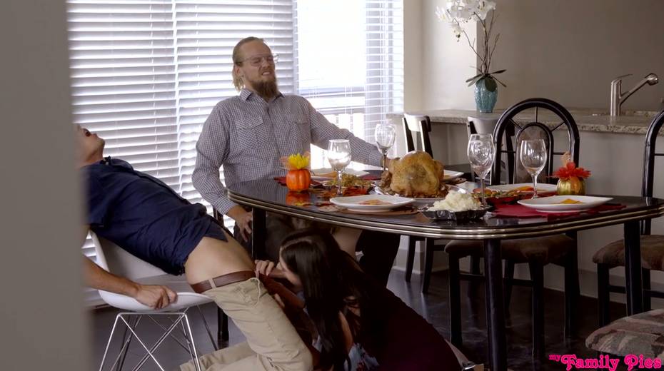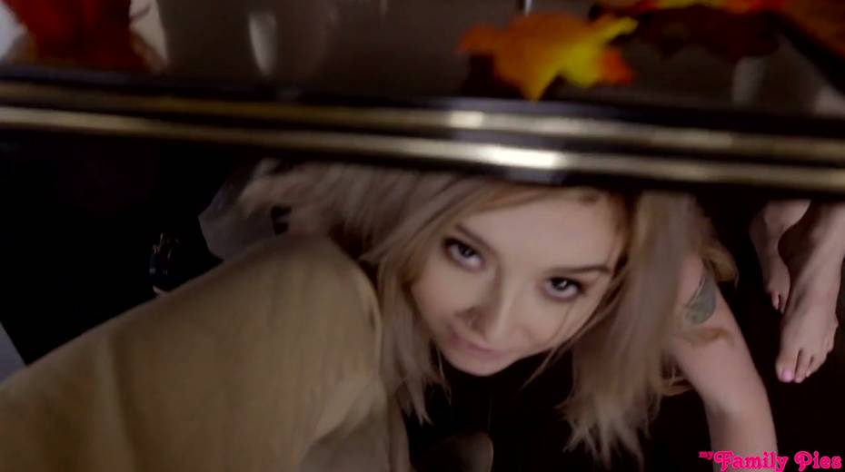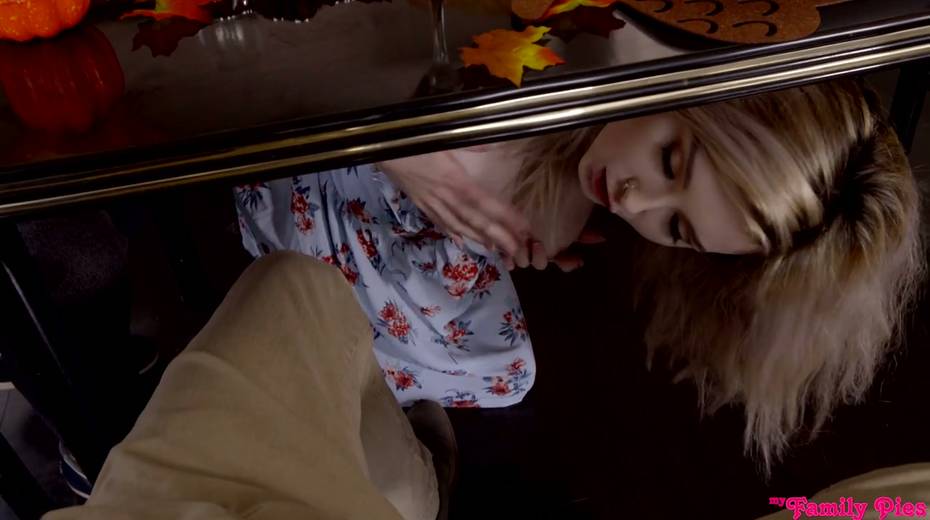 Cum-thirsty brunette Lexi Lore gives a great blowjob under the table