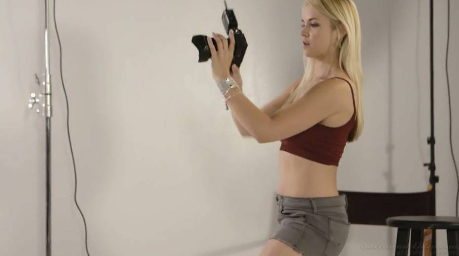 Blond photographer Sarah Vandella gives a cunnilingus to sexy model