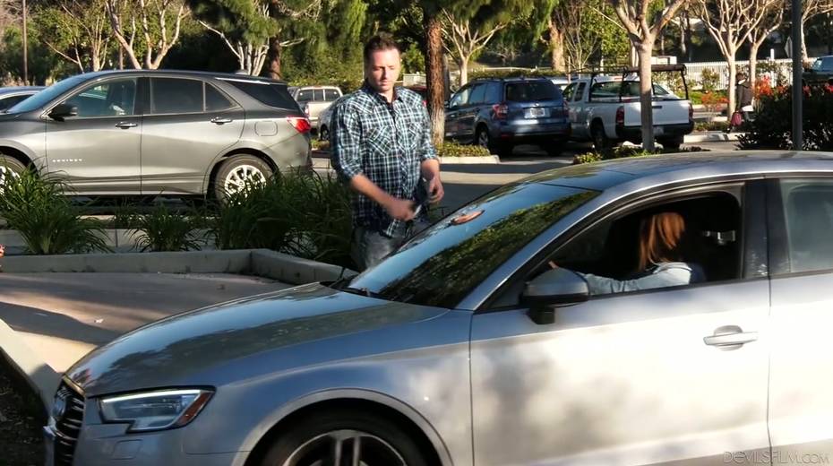 Ample breasted female driver Natasha Nice picks up one stranger in the street