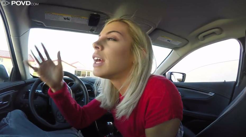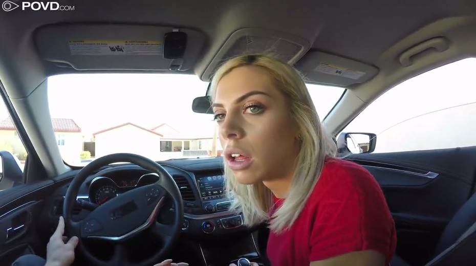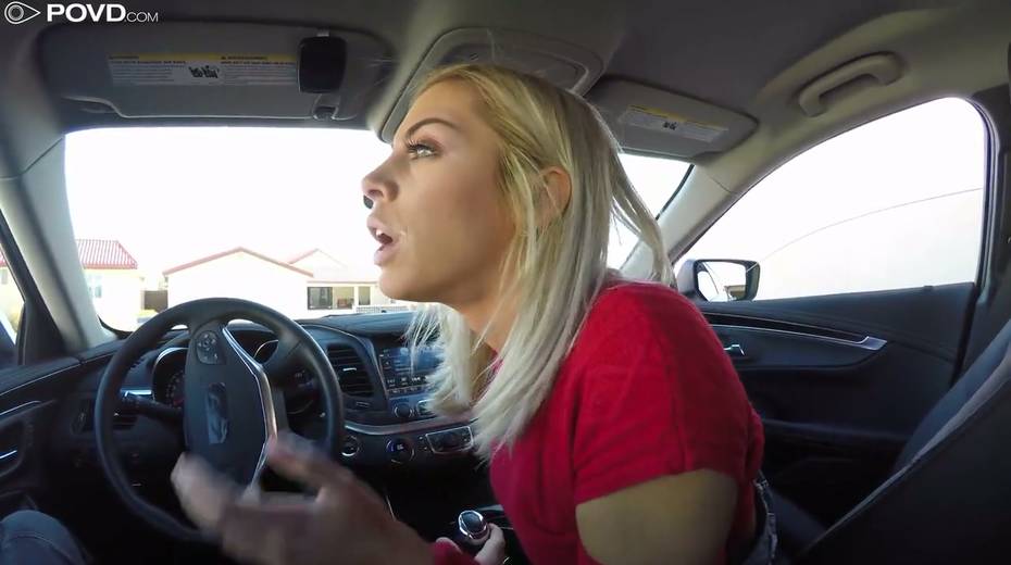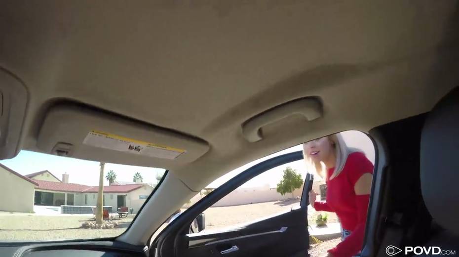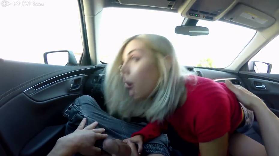 Blond wench Allie Nicole gives a blowjob in the car and gets her muff rammed