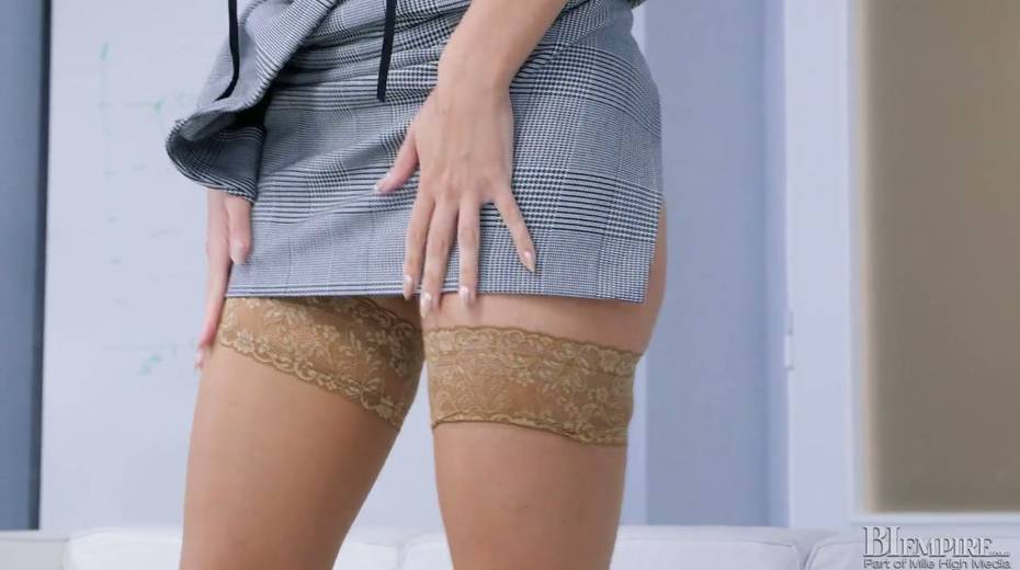Awesome babe Angel Wicky gets naked and plays with charming smooth pussy