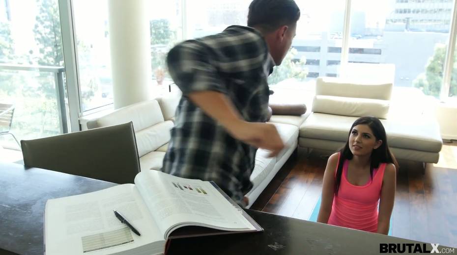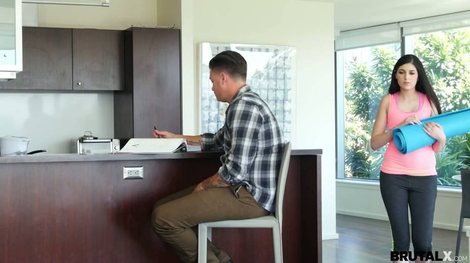 Brutal stepbrother fucks sexy stepsister in ripped yoga pants Miranda Miller