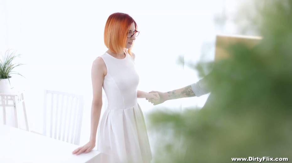 Red haired Estonian chick in glasses Elin Holm gets her anus rammed hard