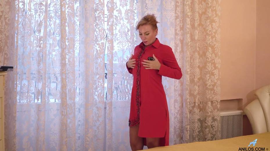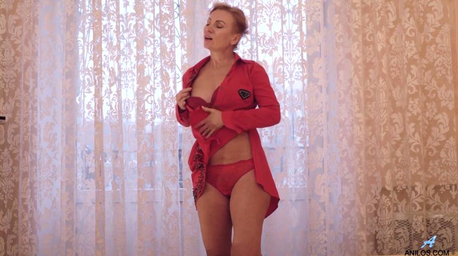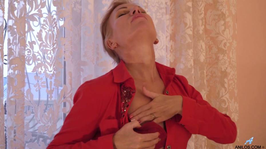 Mature housewife Silvia gets naked and plays with nipples and yummy hole