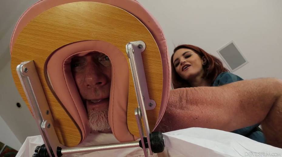 Yummy red haired masseuse Lola Fae gets intimate with old client