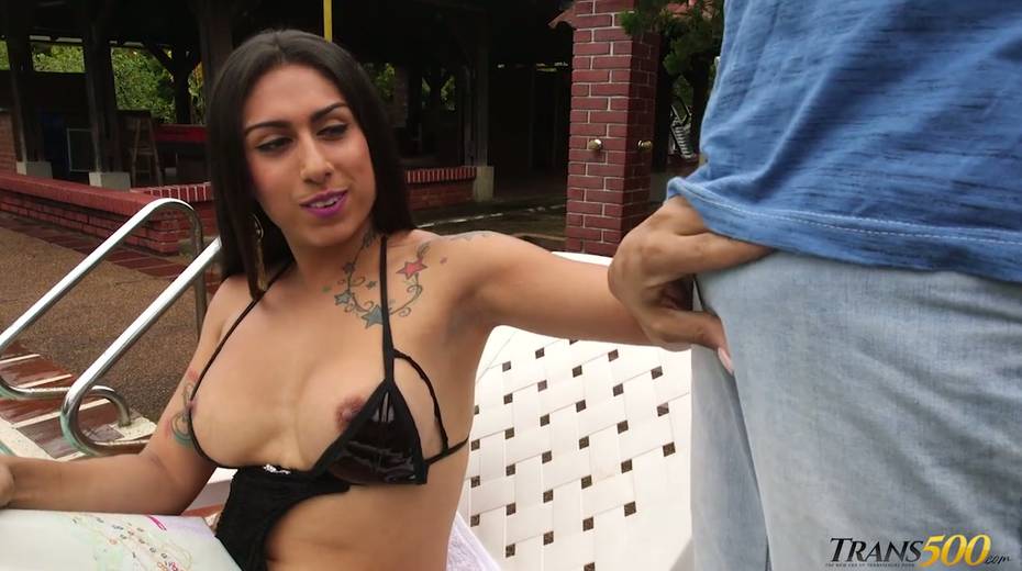 Ample breasted shemale Andrea Dimaggio is fucked by horny gardener