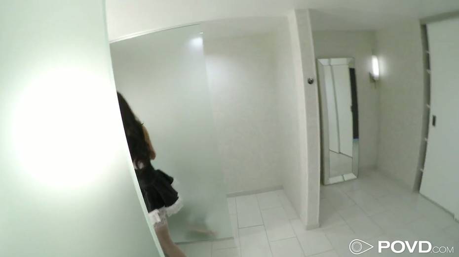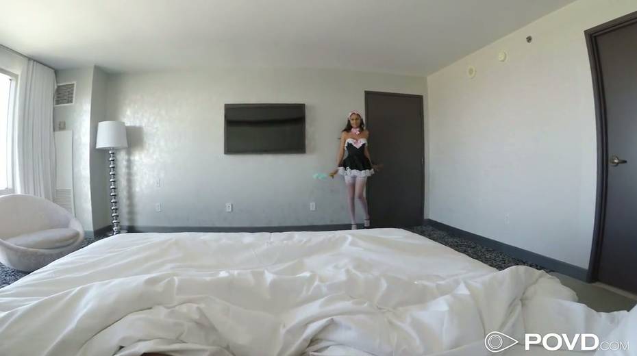 Gorgeous slut in sexy maid uniform Ariana Marie polishes hard cock with her twat