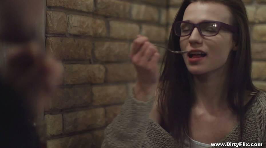 Nerdy babe in glasses Riley Jorden gets her muff fucked and jizzed