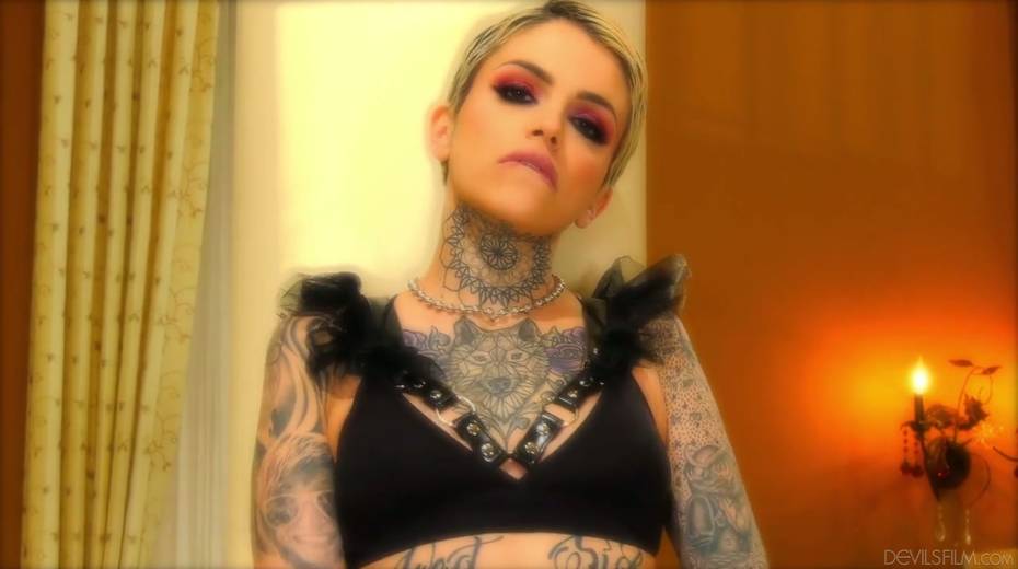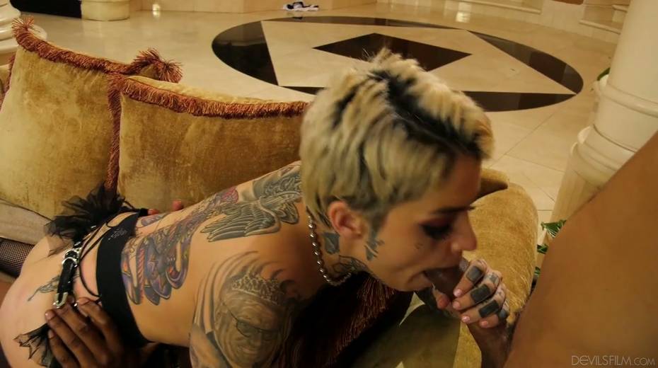Three well endowed dudes fuck pussy anus and throat of tattooed hoe Leigh Raven