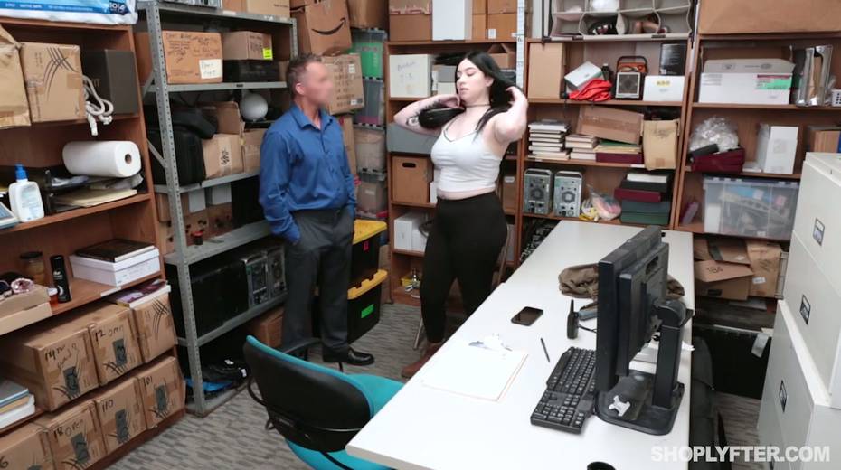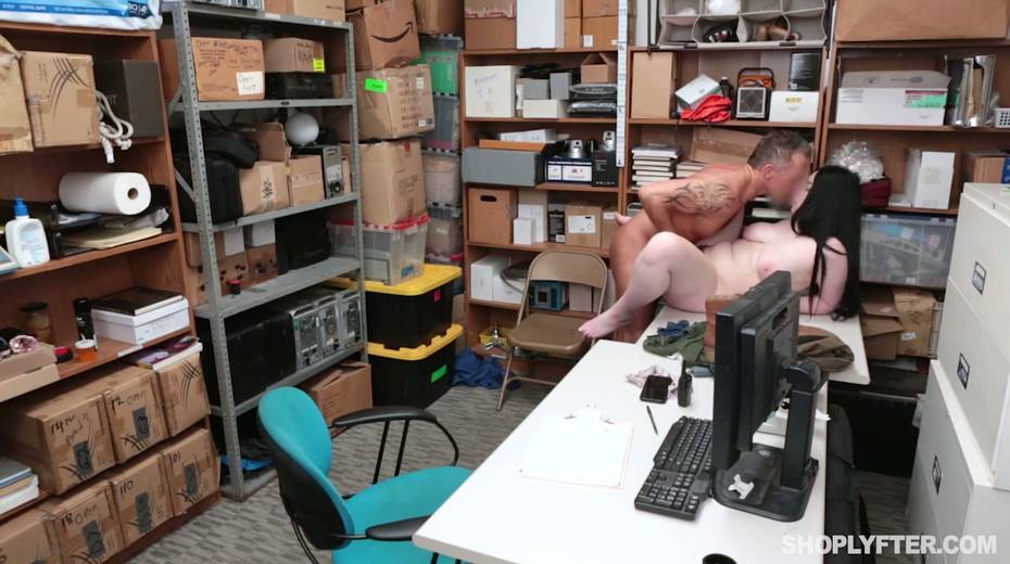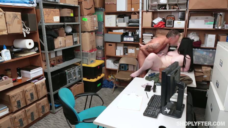 Busty shoplifting chick Amilia Onyx is fucked by kinky dude in the back room