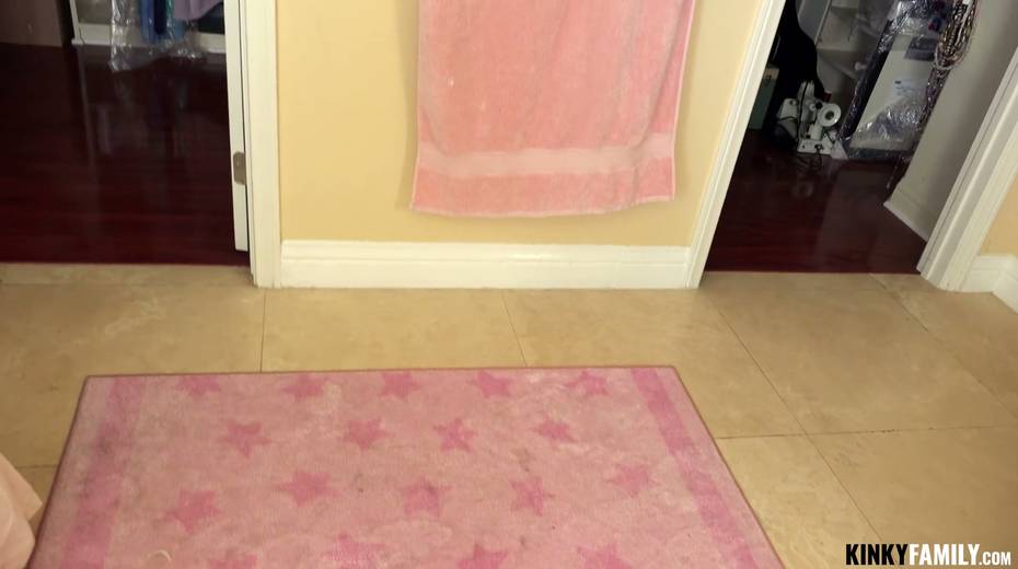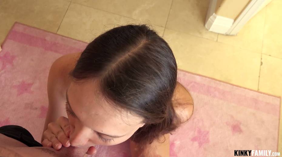 Lustful stepsister Izzy Lush gives a great deepthroat blowjob standing on her knees