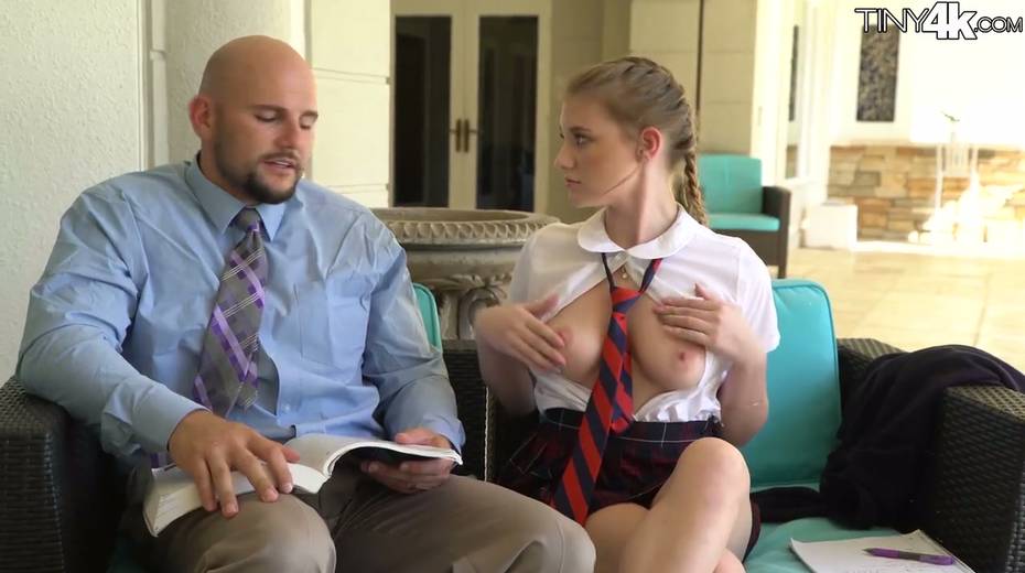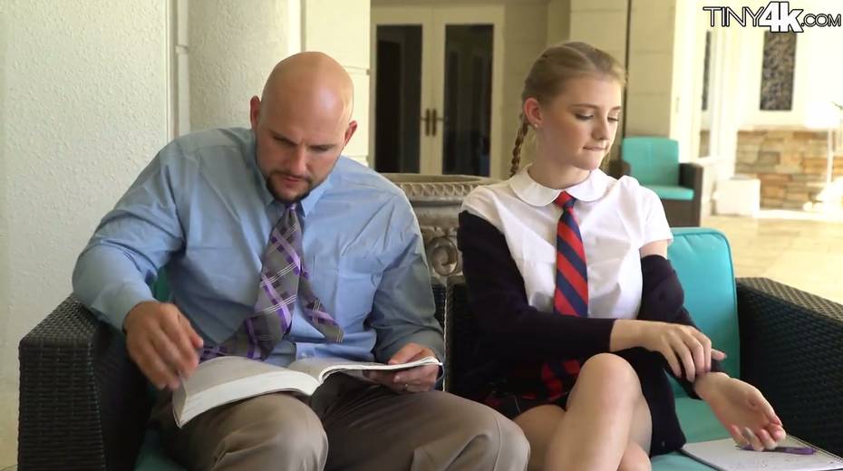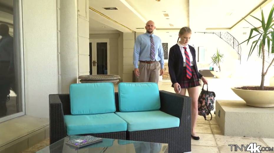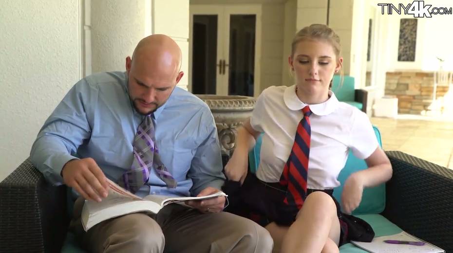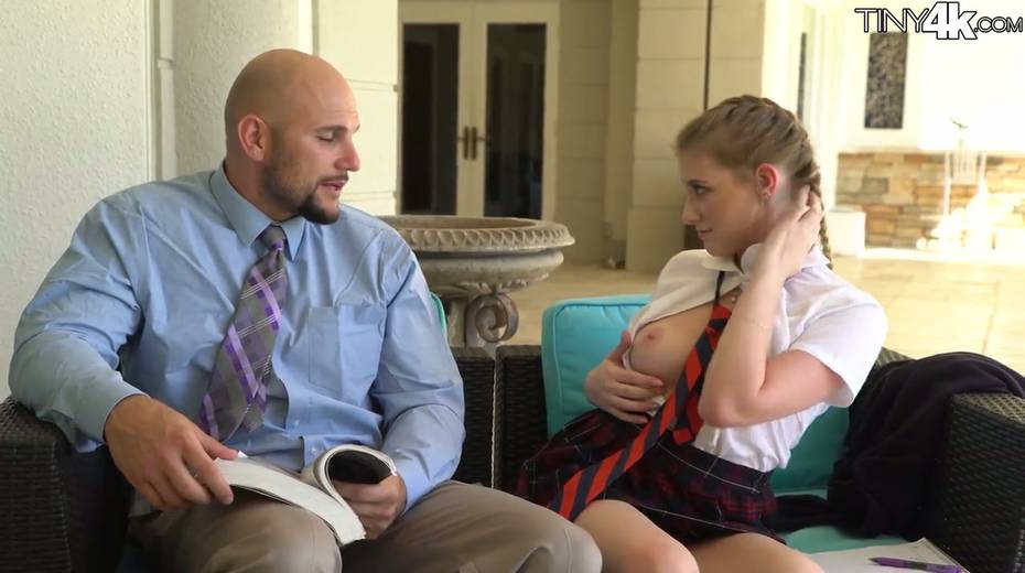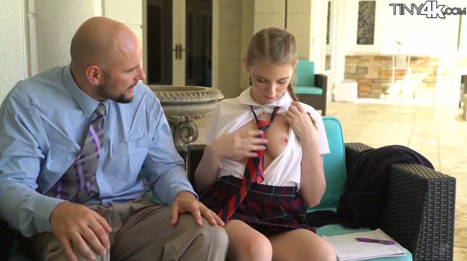 Petite student in short kilt skirt Melody Marks hooks up with bald headed teacher