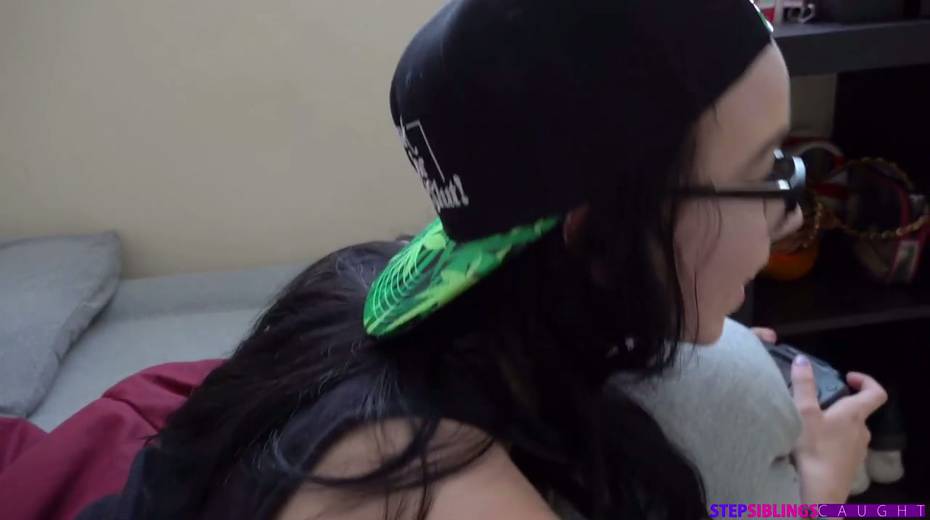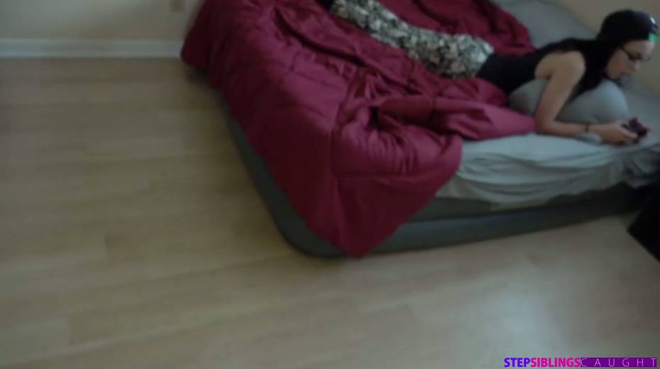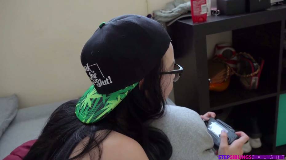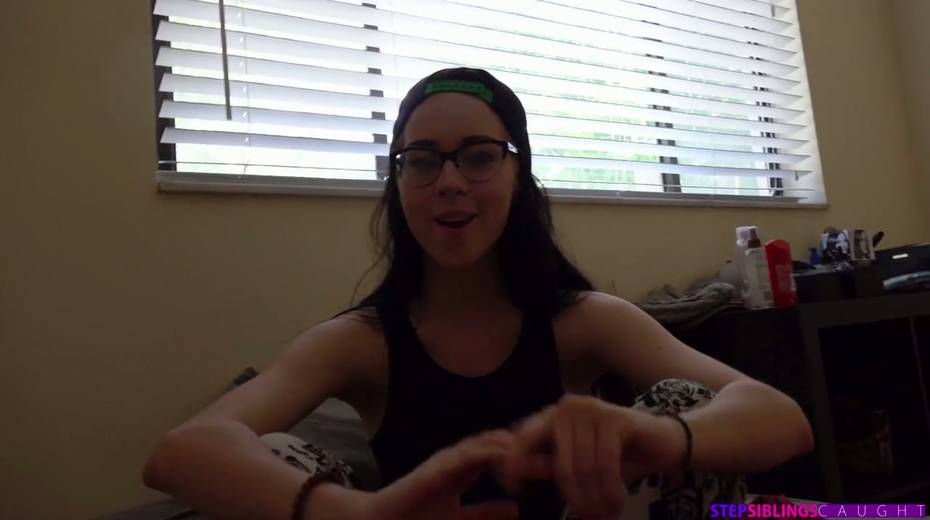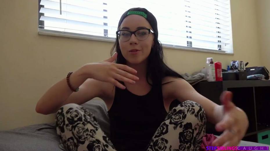 Four eyed stepsister Bambi Black shows off her creampied pinkish hole