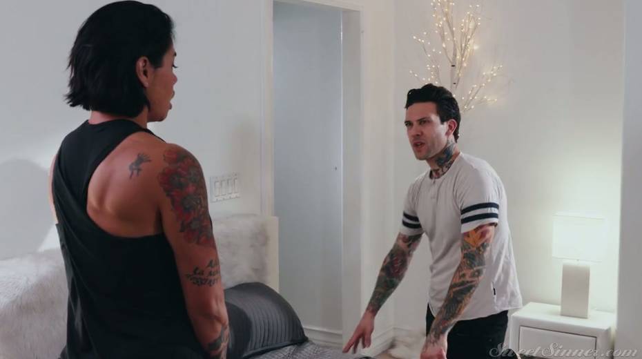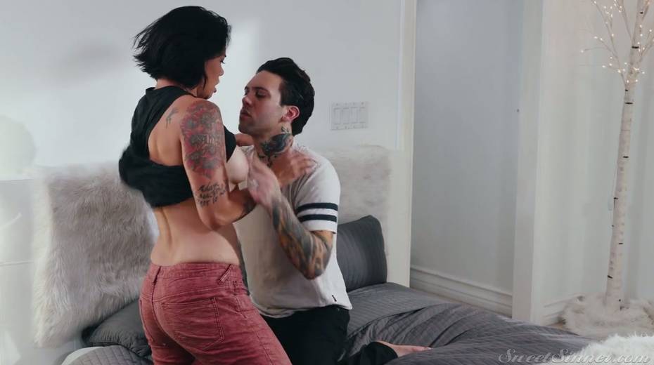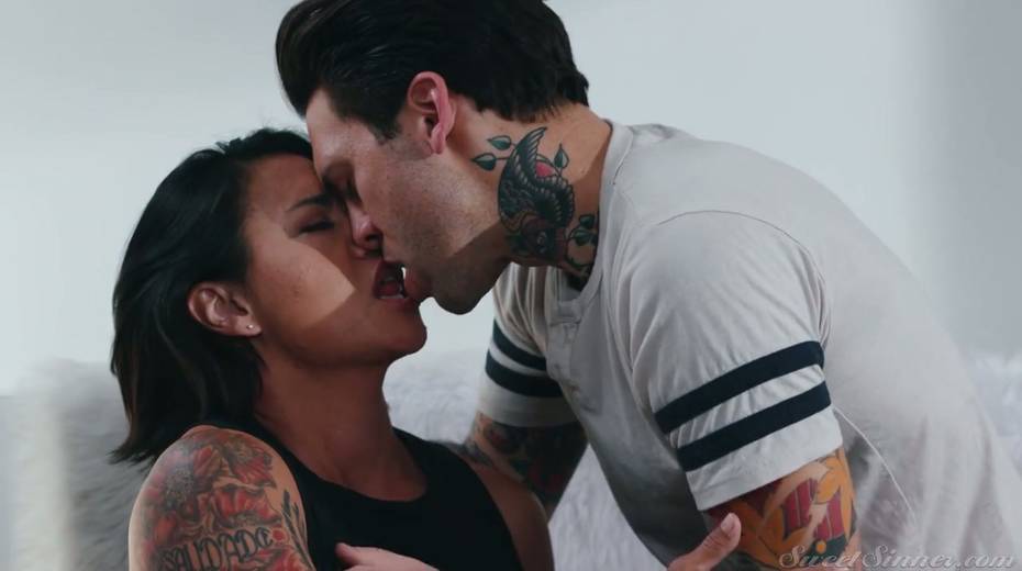 Tattooed stud fucks Dana Vespoli and cums on her nice butt cheeks