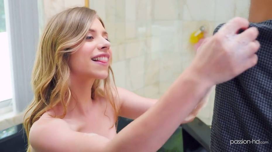 Sex-appeal babe Anya Olsen gives a blowjob in the bathtub and gets laid on the bed