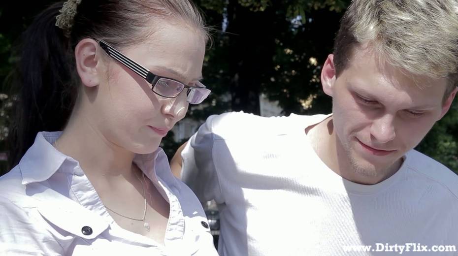 Skinny dude picks up and fucks nerdy brunette in glasses Timea Bella