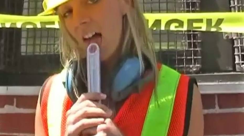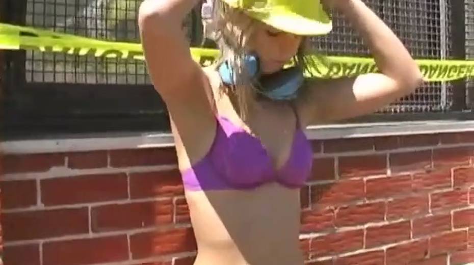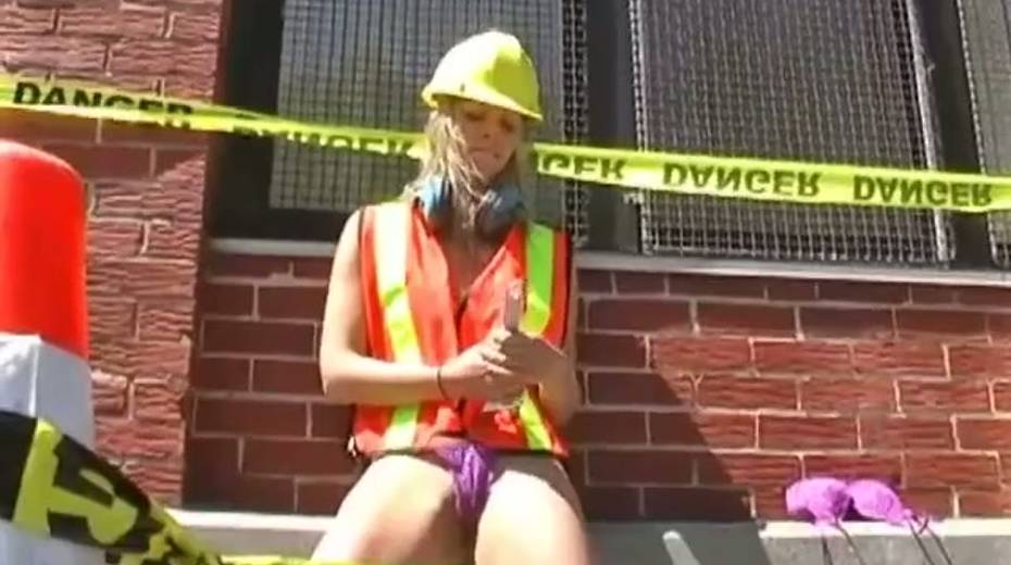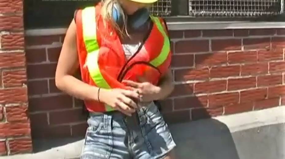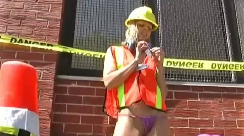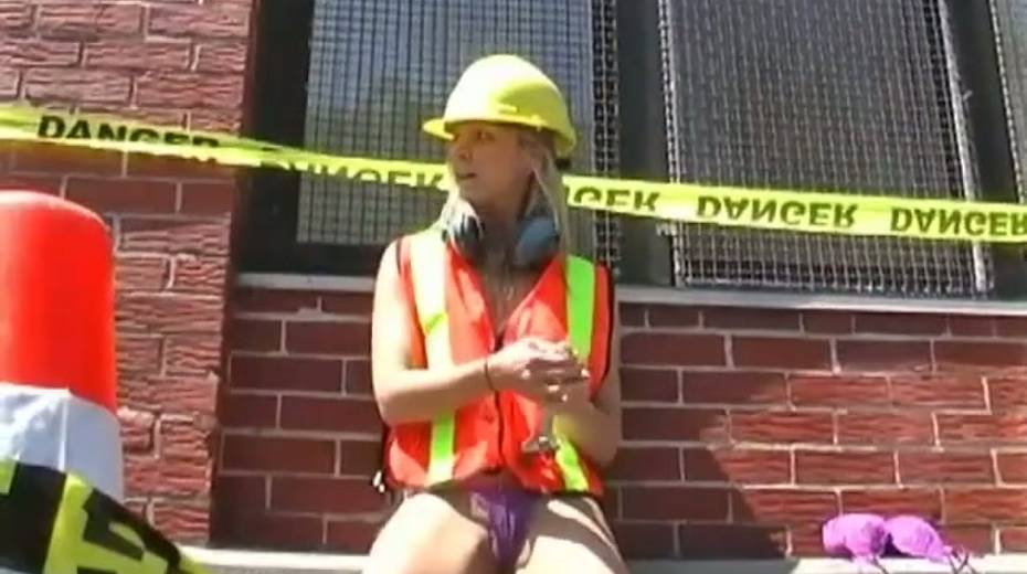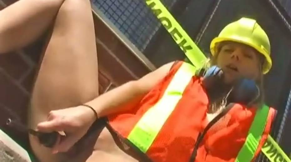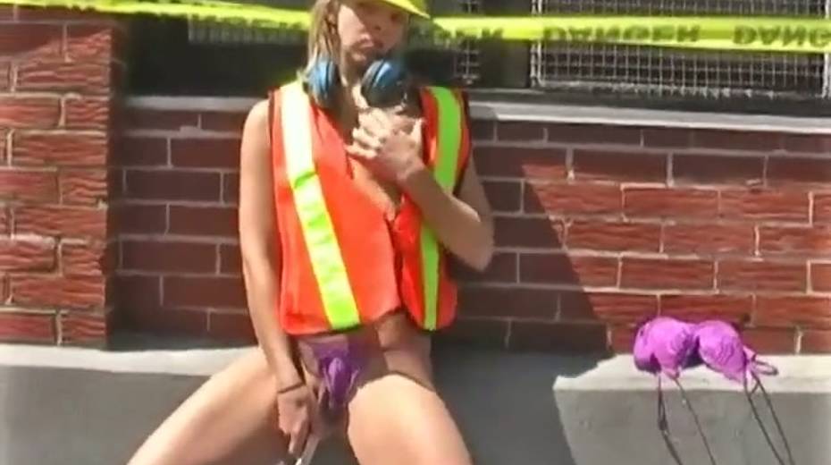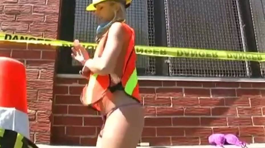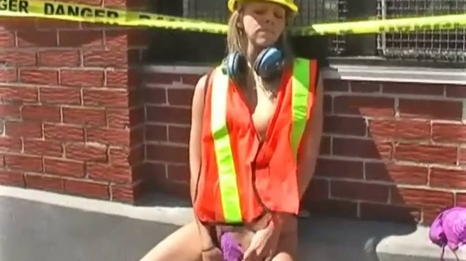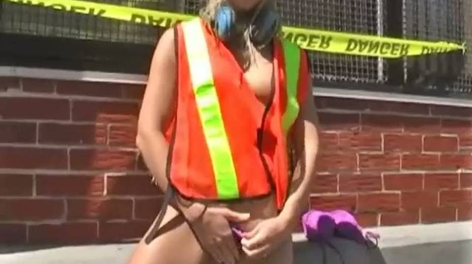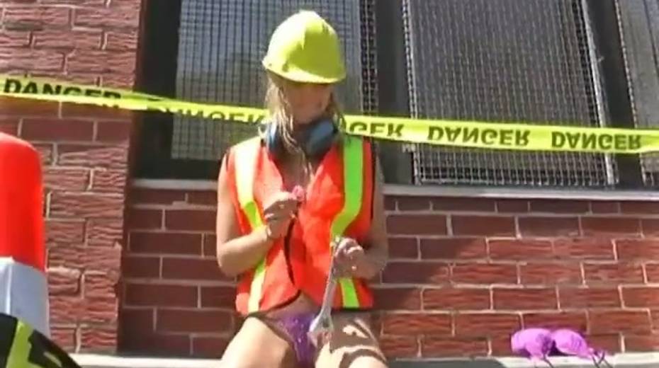 Crazy chick in helmet Candy Kiss is masturbating her snatch in public