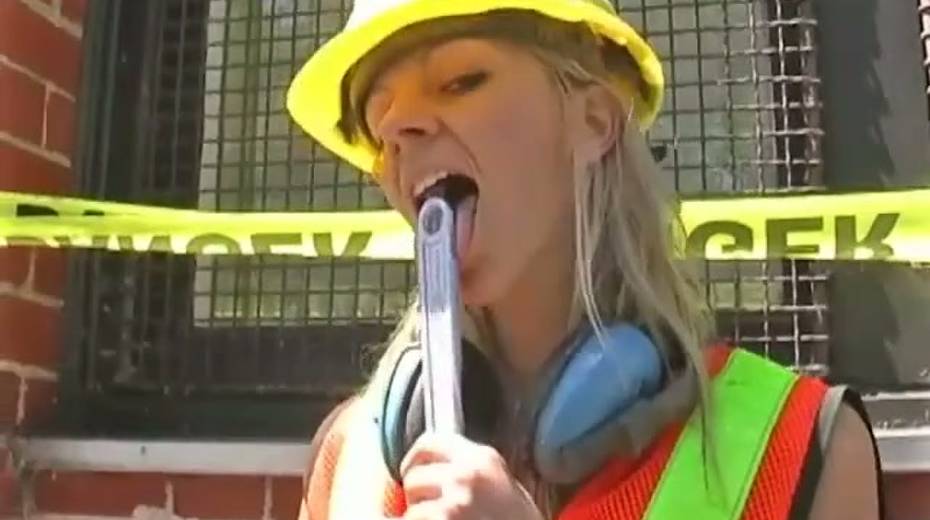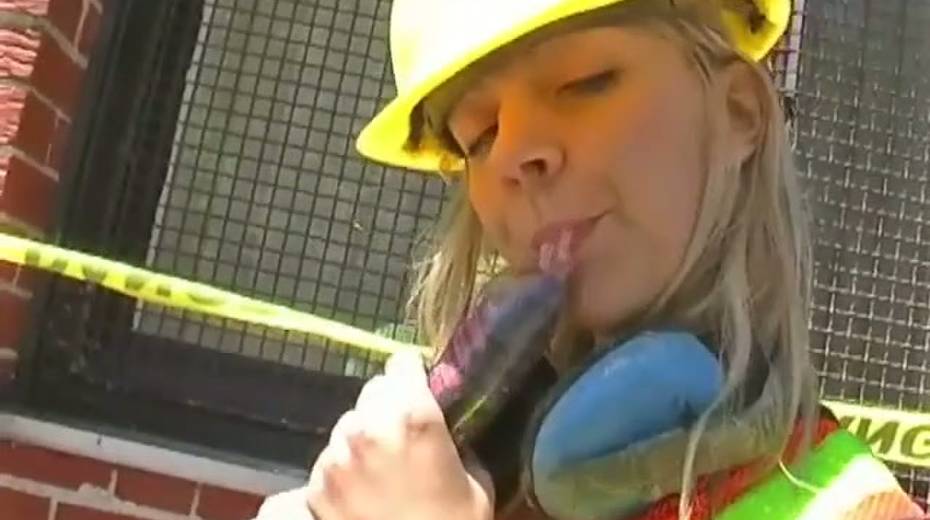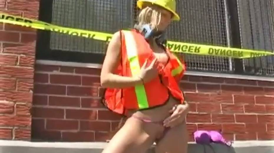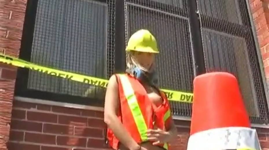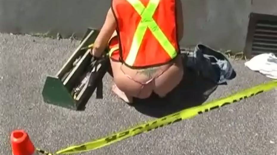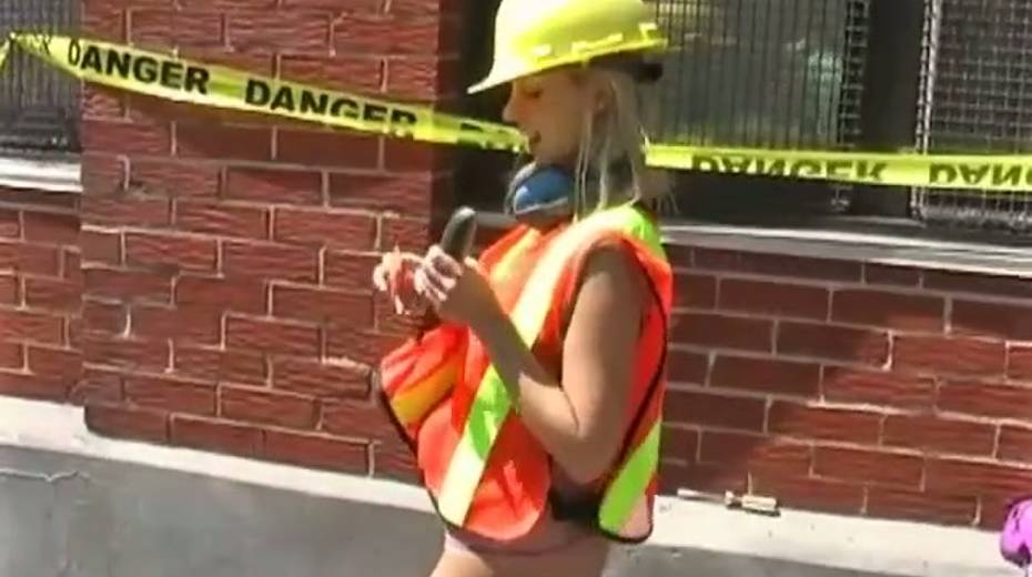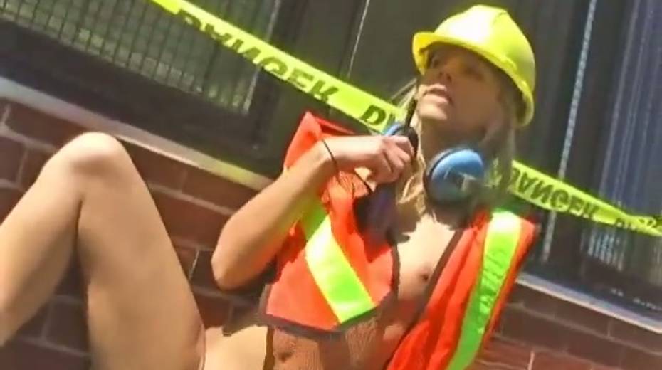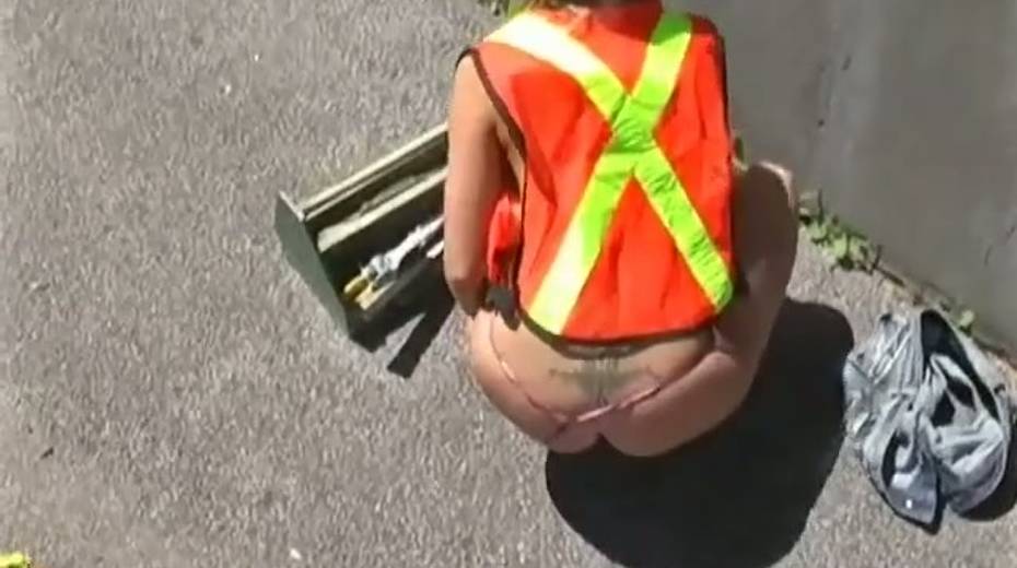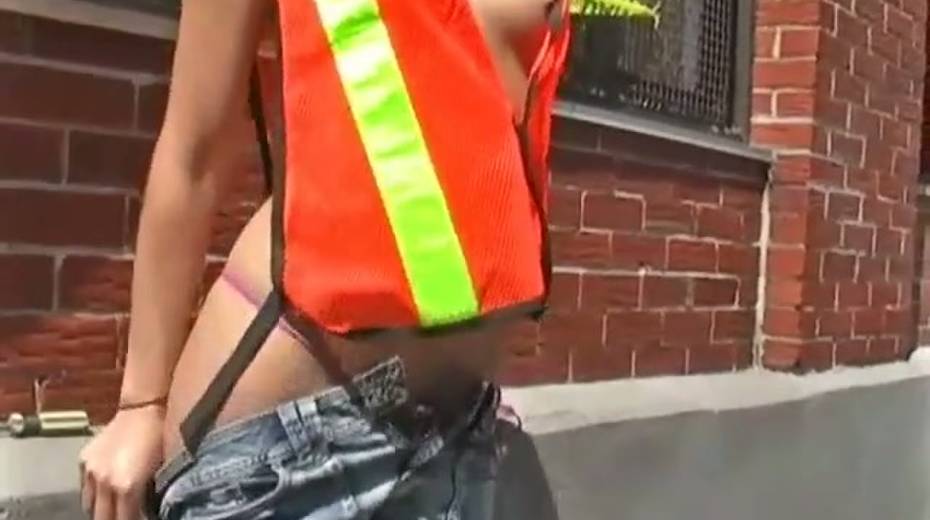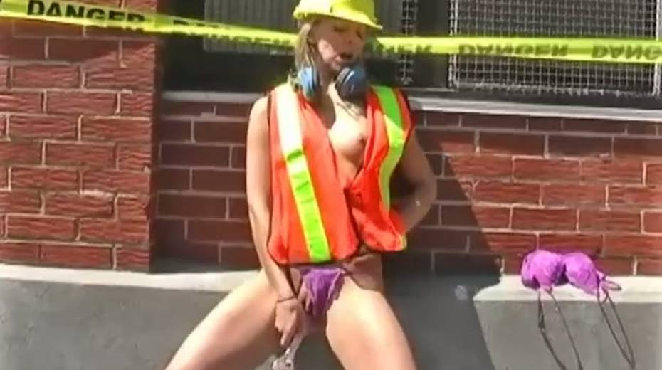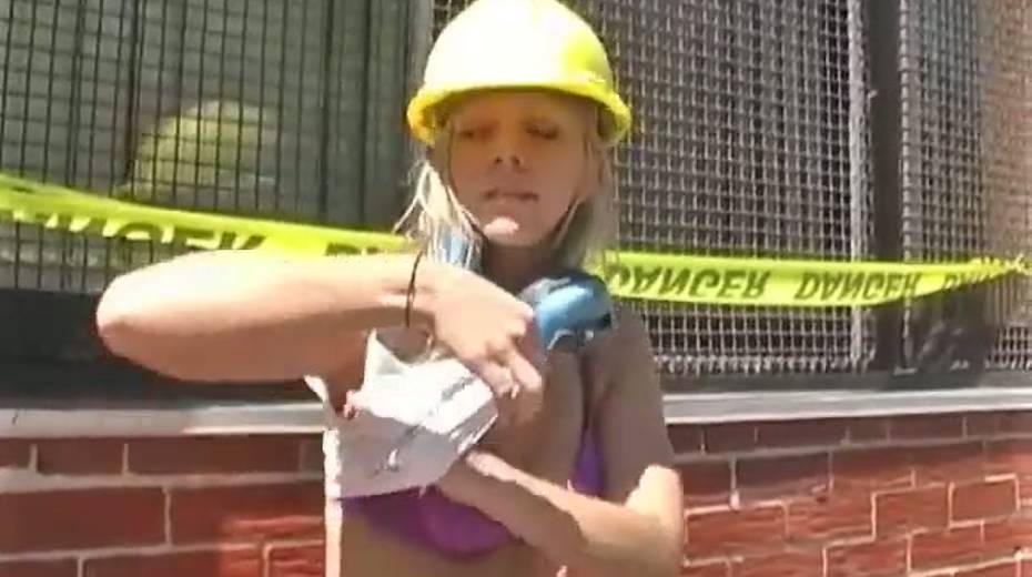 Crazy chick in helmet Candy Kiss is masturbating her snatch in public