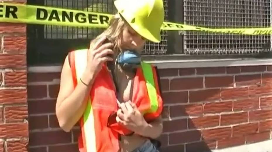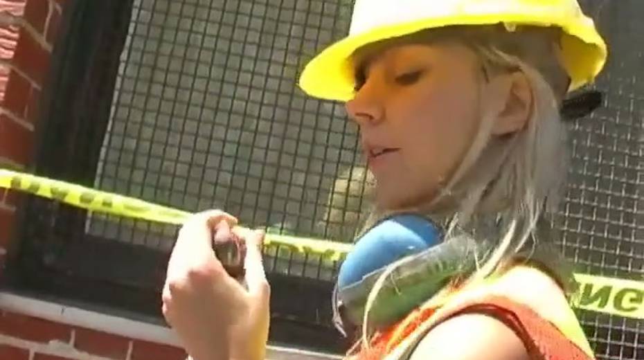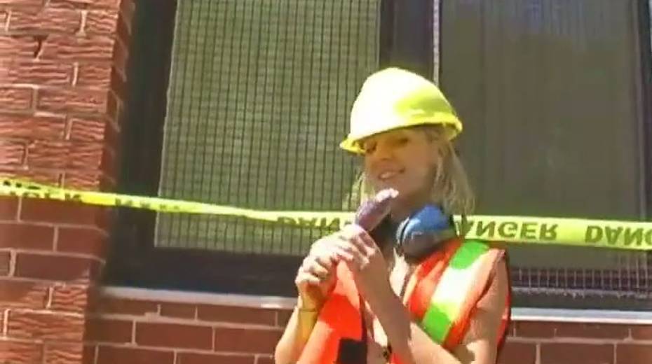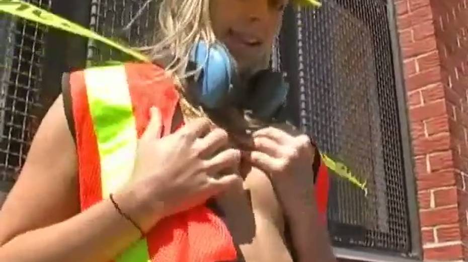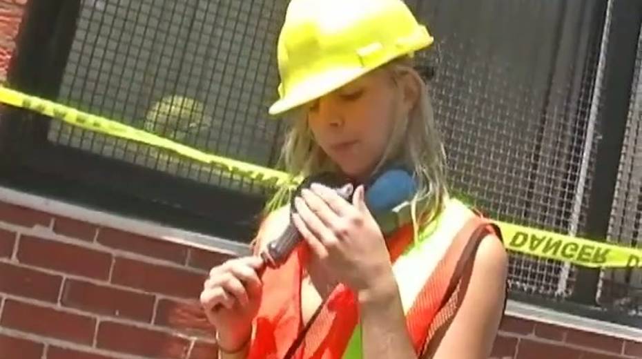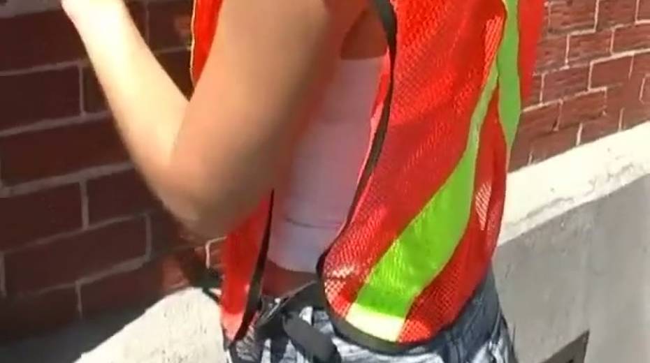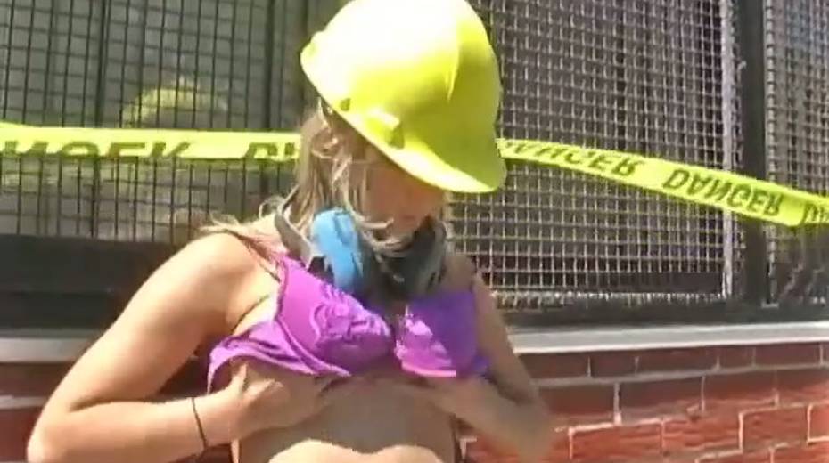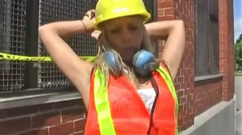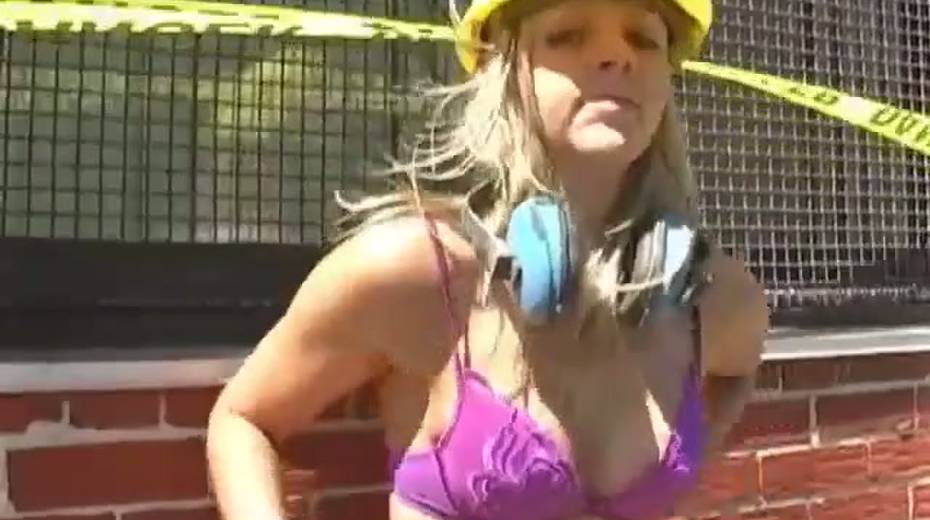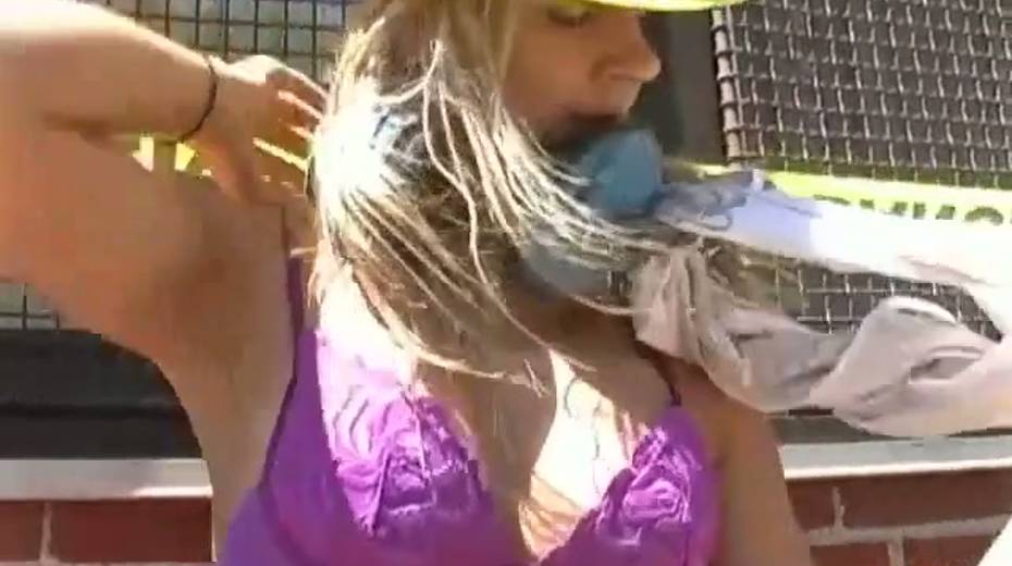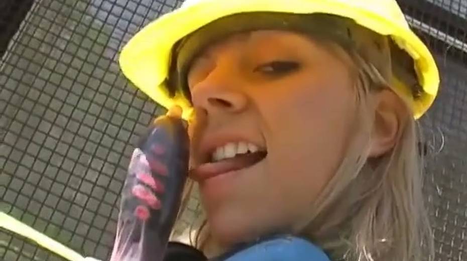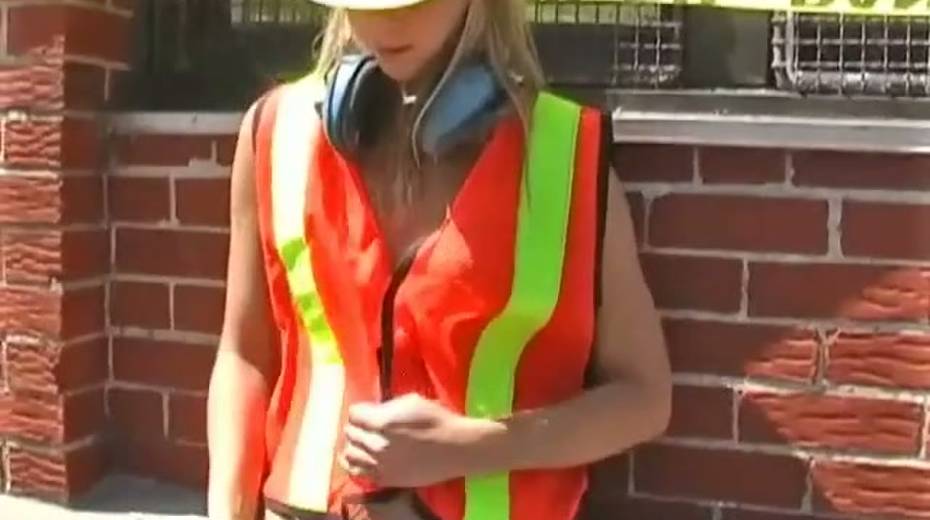 Crazy chick in helmet Candy Kiss is masturbating her snatch in public
