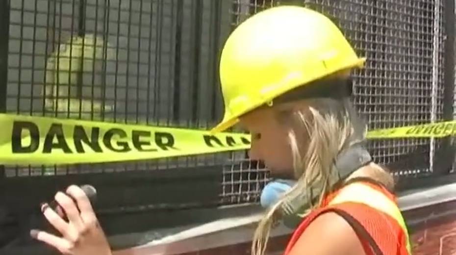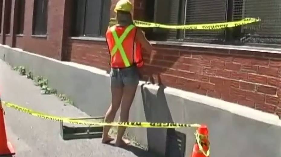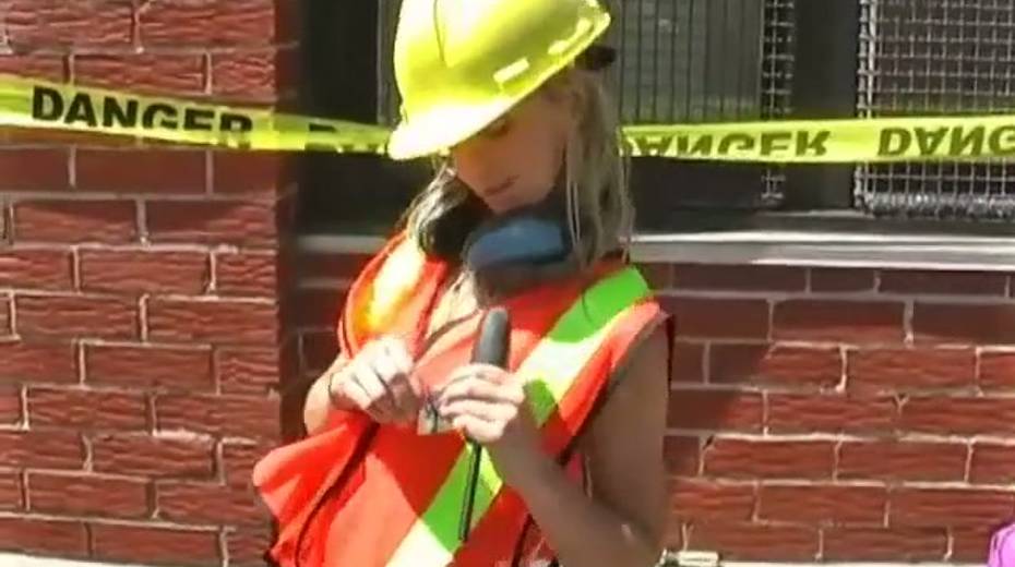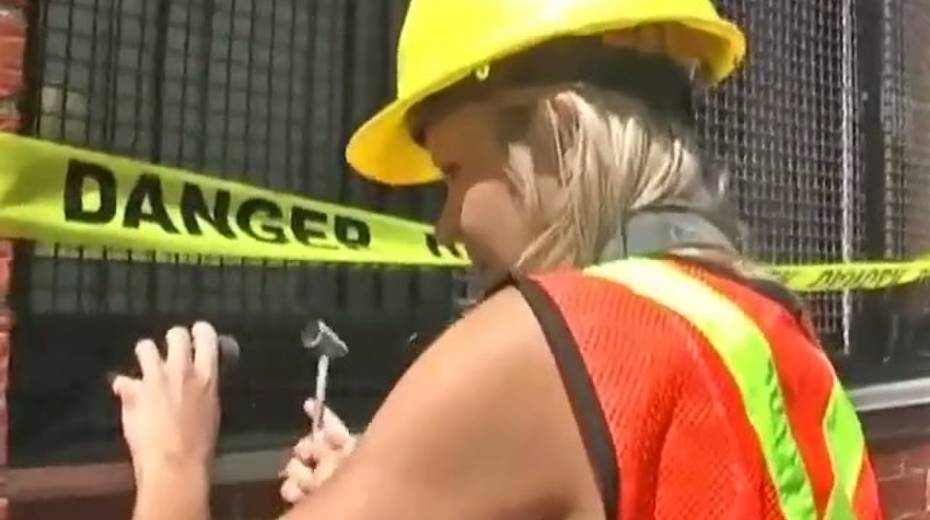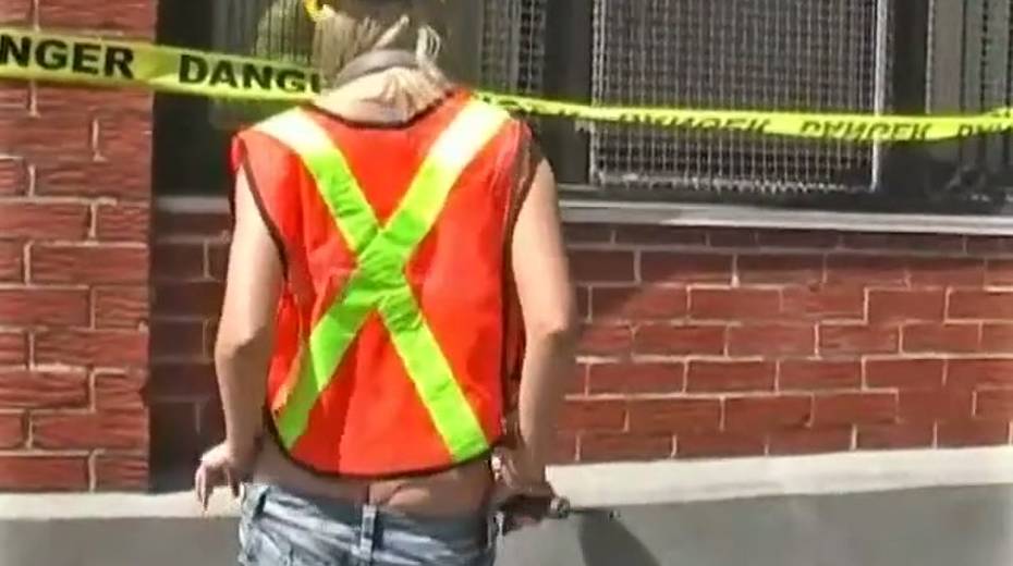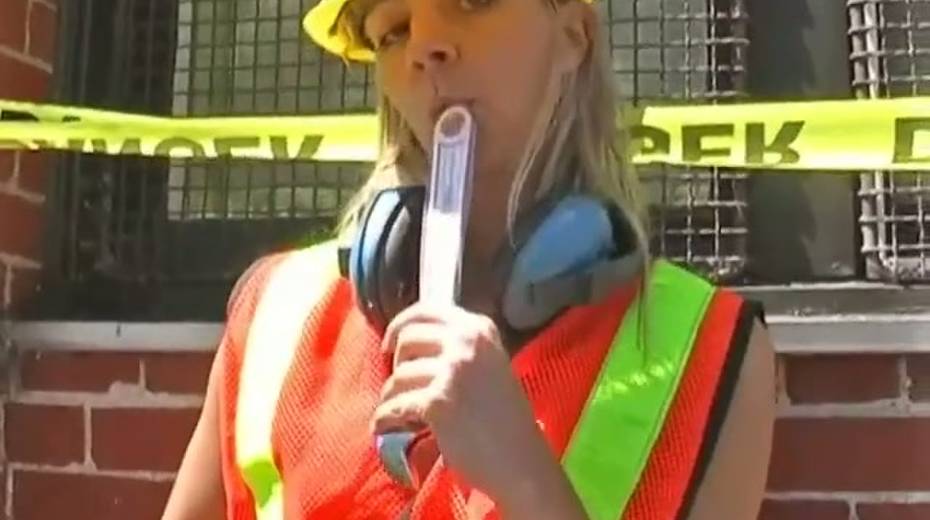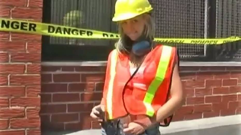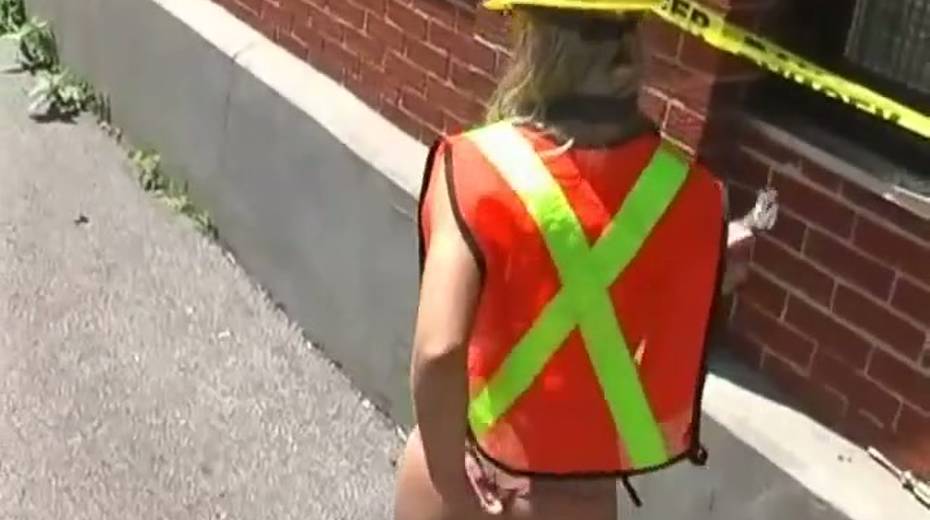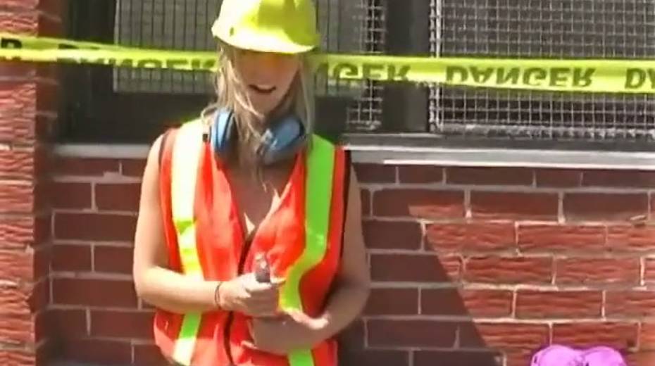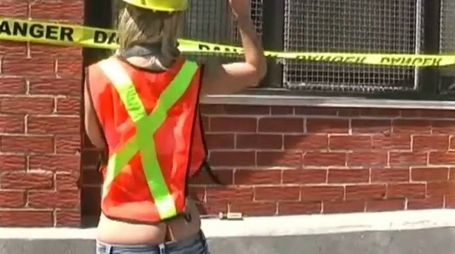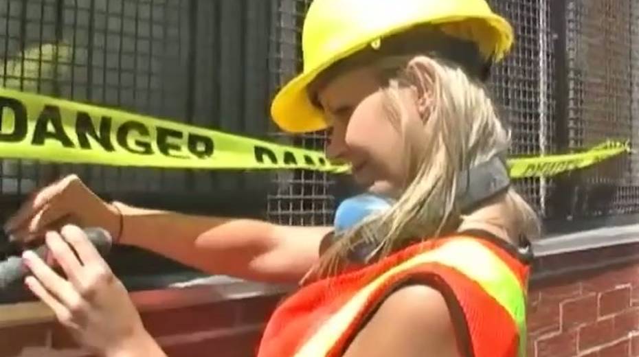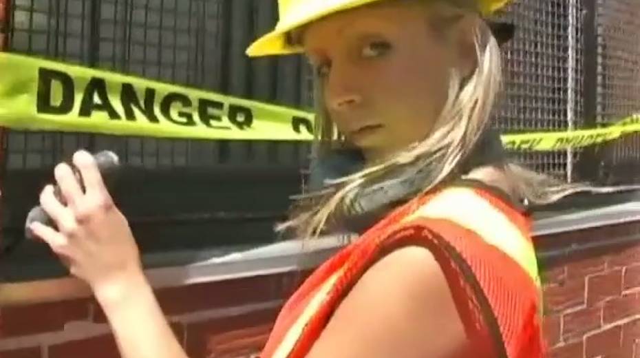 Crazy chick in helmet Candy Kiss is masturbating her snatch in public