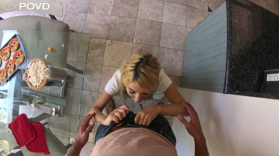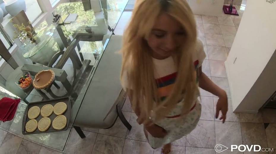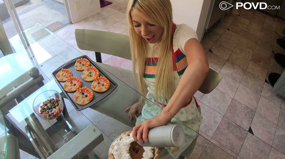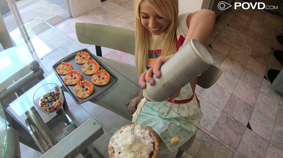 Nice young housewife Kenzie Reeves enjoys eating a big dick covered with whipped cream