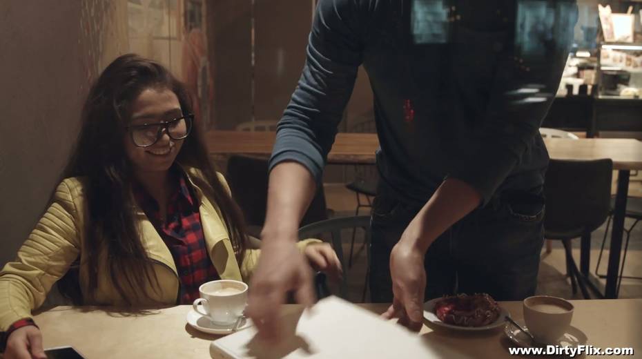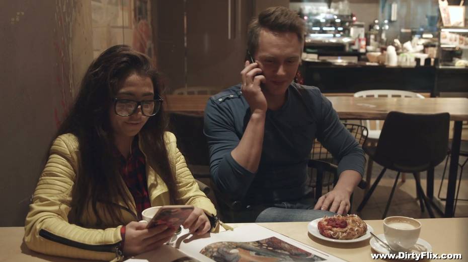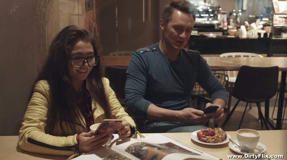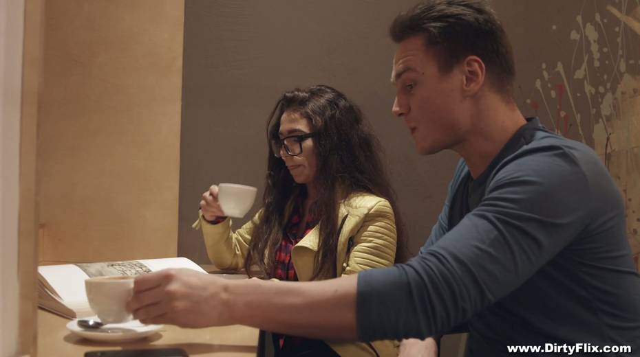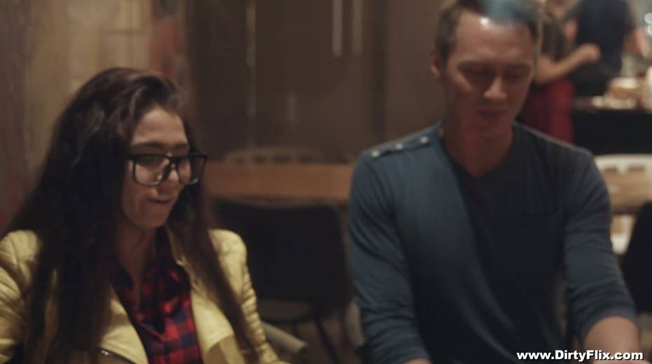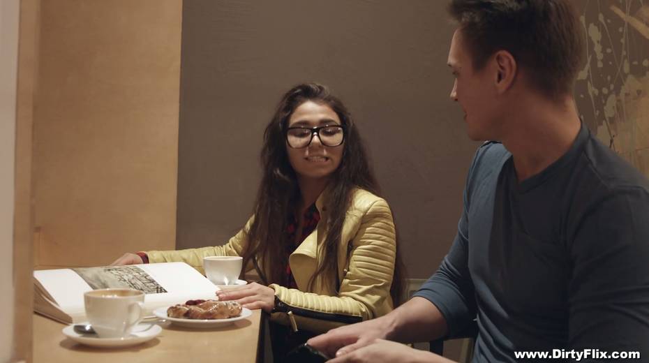 Nerdy brunette in glasses Little Candy is fucked hard by horny guy