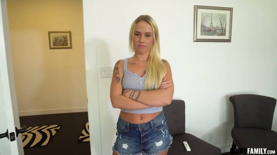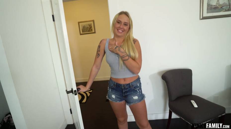 Lecherous blonde with pierced nipples Layla Love gets intimate with her stepbrother