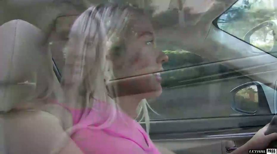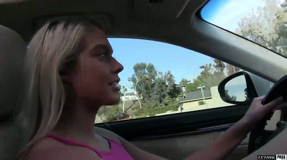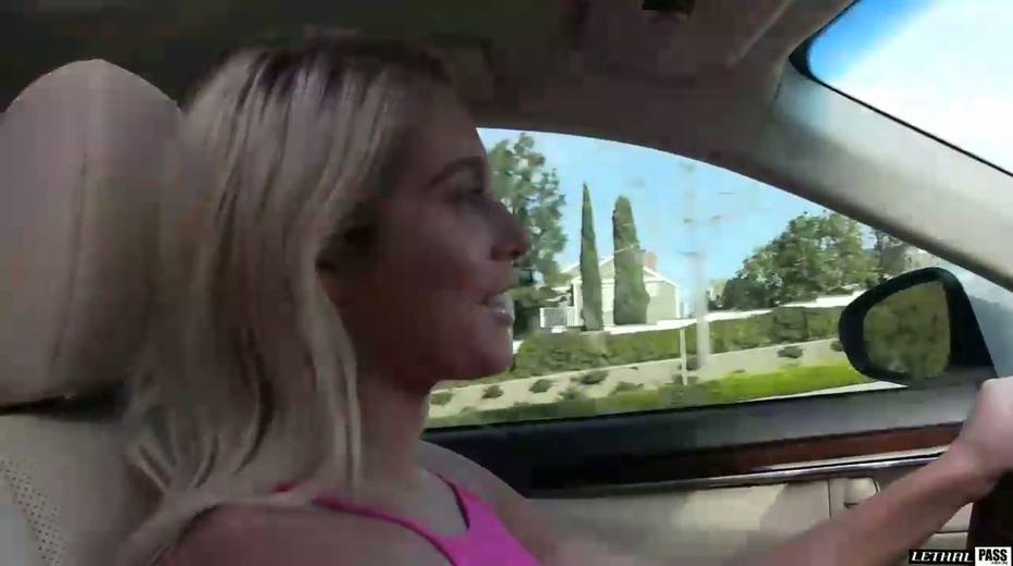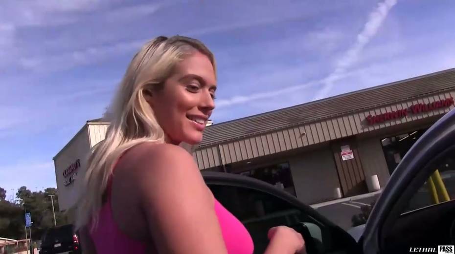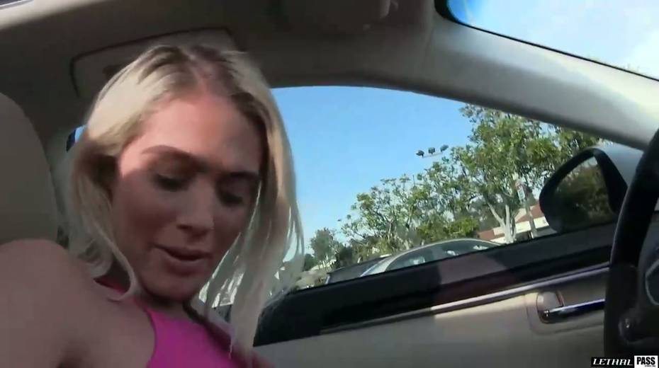 Juggy tanned blondie Athena Palomino masturbates in the car and gets laid indoor