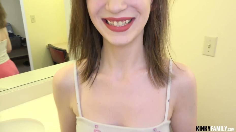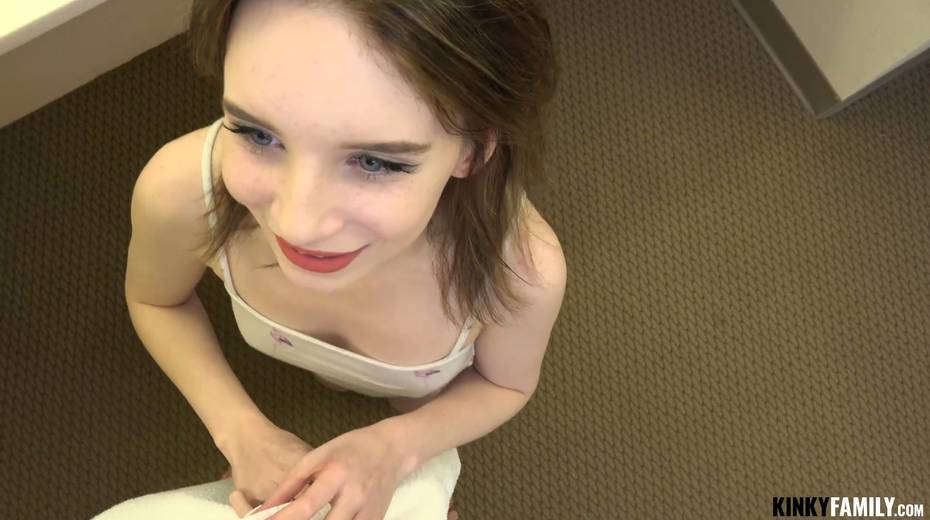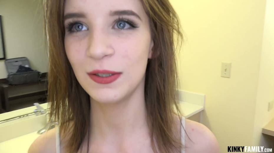 Yummy girl Lily Moon gives a great deepthroat blowjob to her step brother