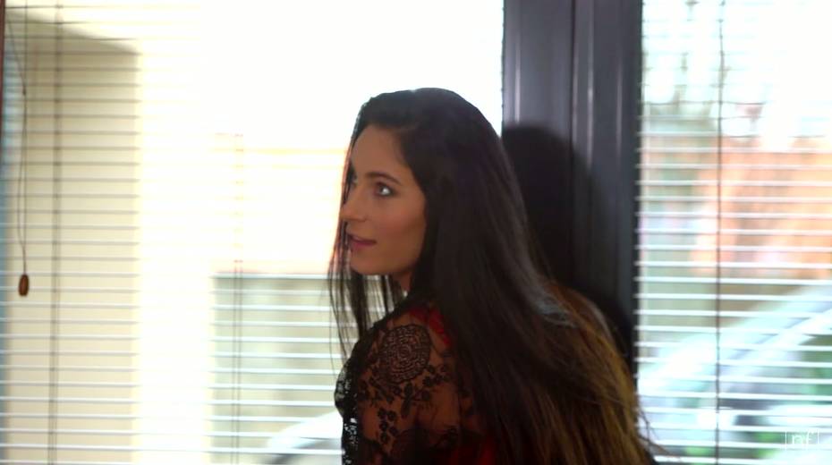 Young brunette Mindy gets her pussy fucked and takes cum on small perky ninnies