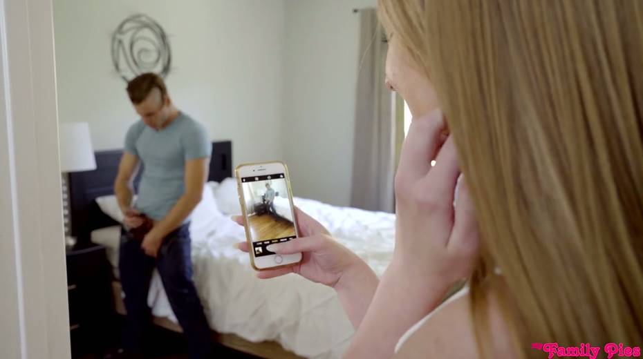 Stepsister Daisy Stone caught her stepbrother jerking off his hard dick