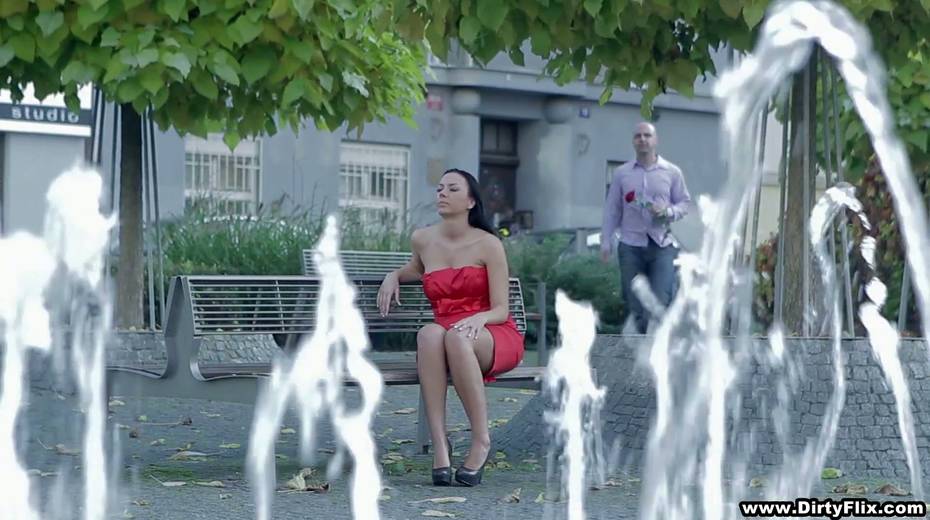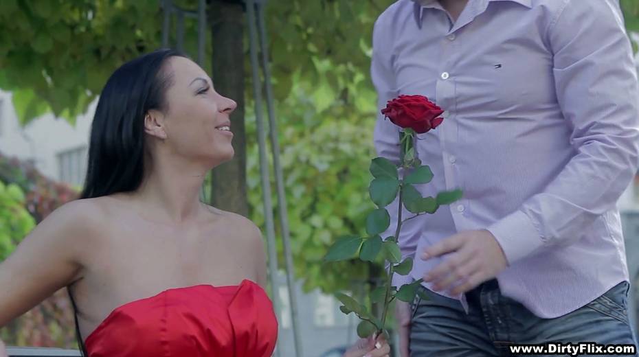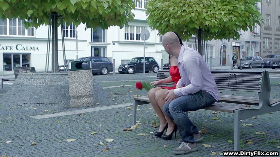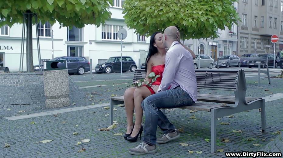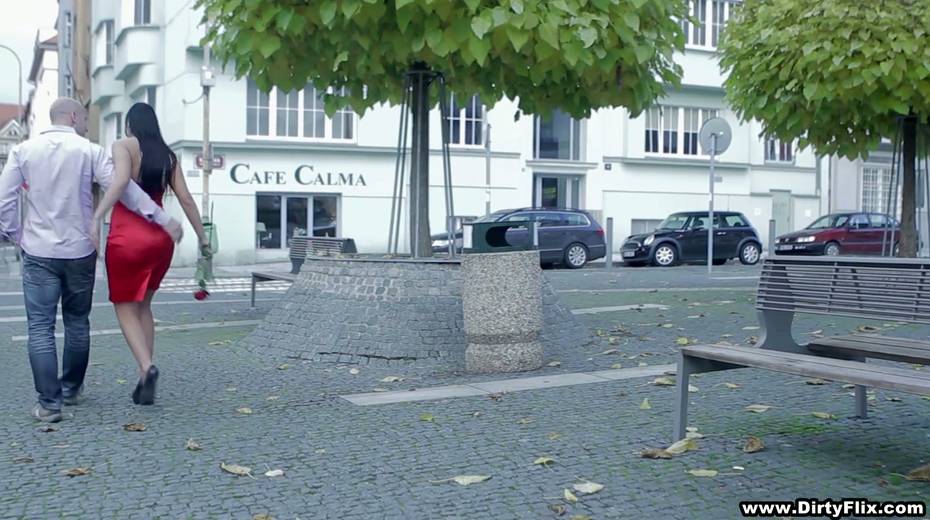 Bodacious brunette in red dress Rebeka is having sex on the first date