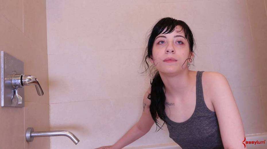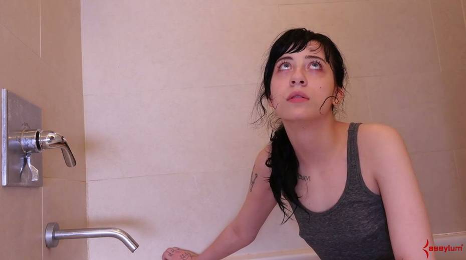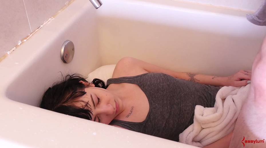 Pervert in mask fucks anus of nice girlfriend putting her head in toilet bowl