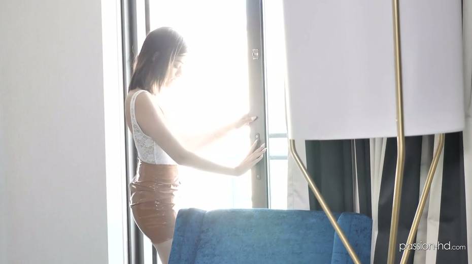 Luscious brunette Harmony Wonders is sucking heavy cock before a steamy cock riding session