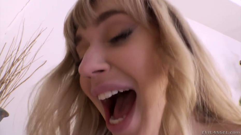 Tall skinny blonde in stockings and lingerie Mackenzie Moss is impaled on big thick penis