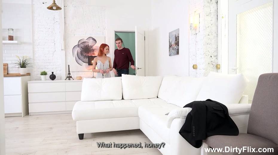 Red haired bitch Michelle Can ties up her boyfriend and makes him cuckold