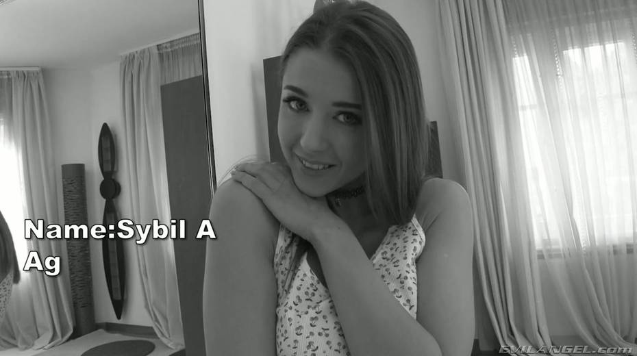 Sexually charged teen Sybil masturbates her slit spreading legs wide open