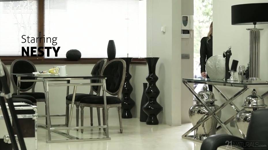 Pretty babe Nesty gives a footjob after a steamy pussy pounding scene