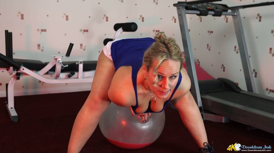Mature blonde Ashley Rider takes out her natural jugs during hot workout